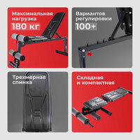 Благодаря интеллектуальной системе блокировки скамьи и изменению наклона опоры вы можете легко регулировать спинку на 15 уровней – это позволяет быстро преобразовать ее для тренировки в прямое, наклонное и даже отрицательное положение.