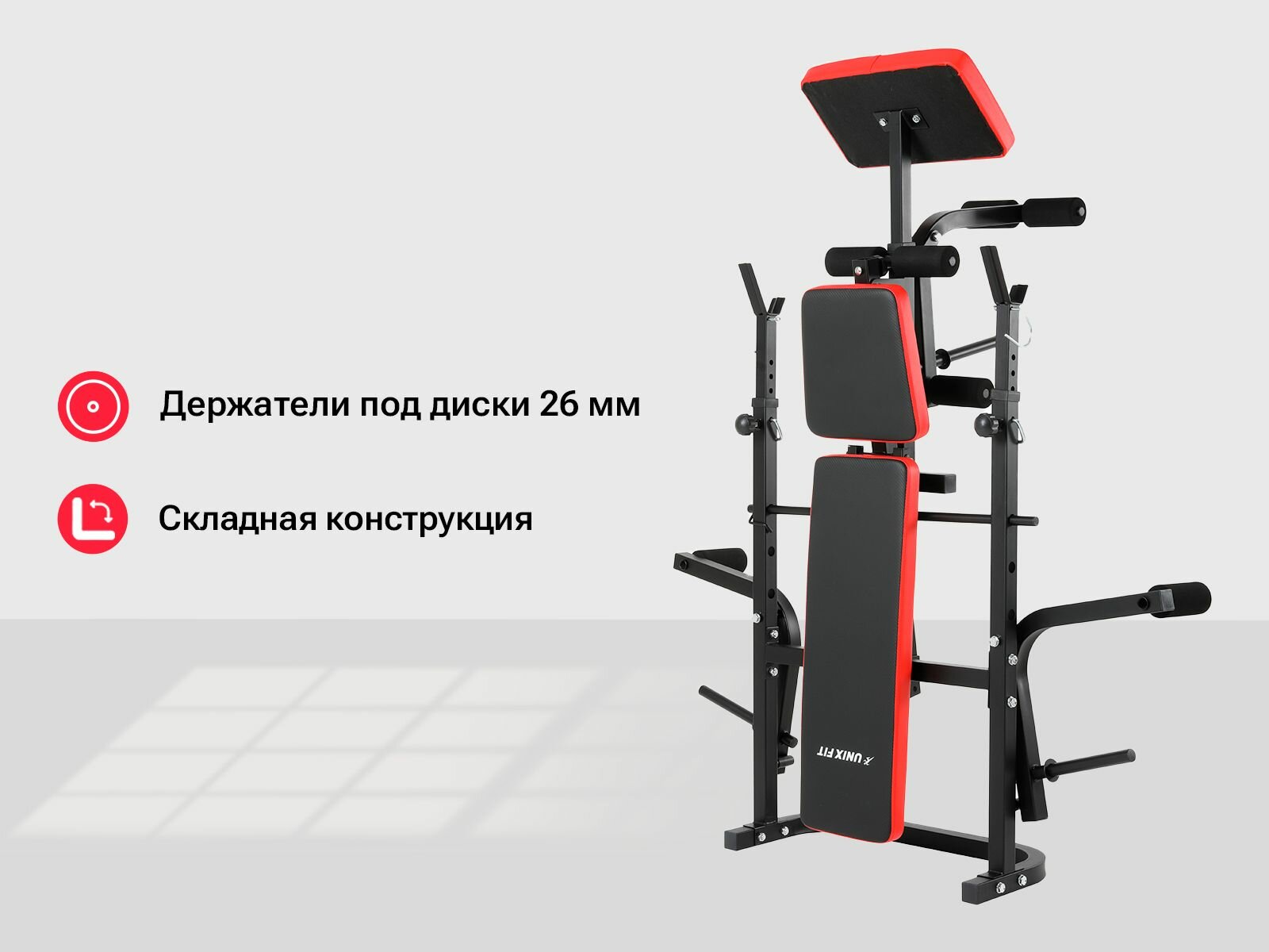 Плюсы универсальной силовой скамьи со стойками UNIX Fit BENCH 120P: