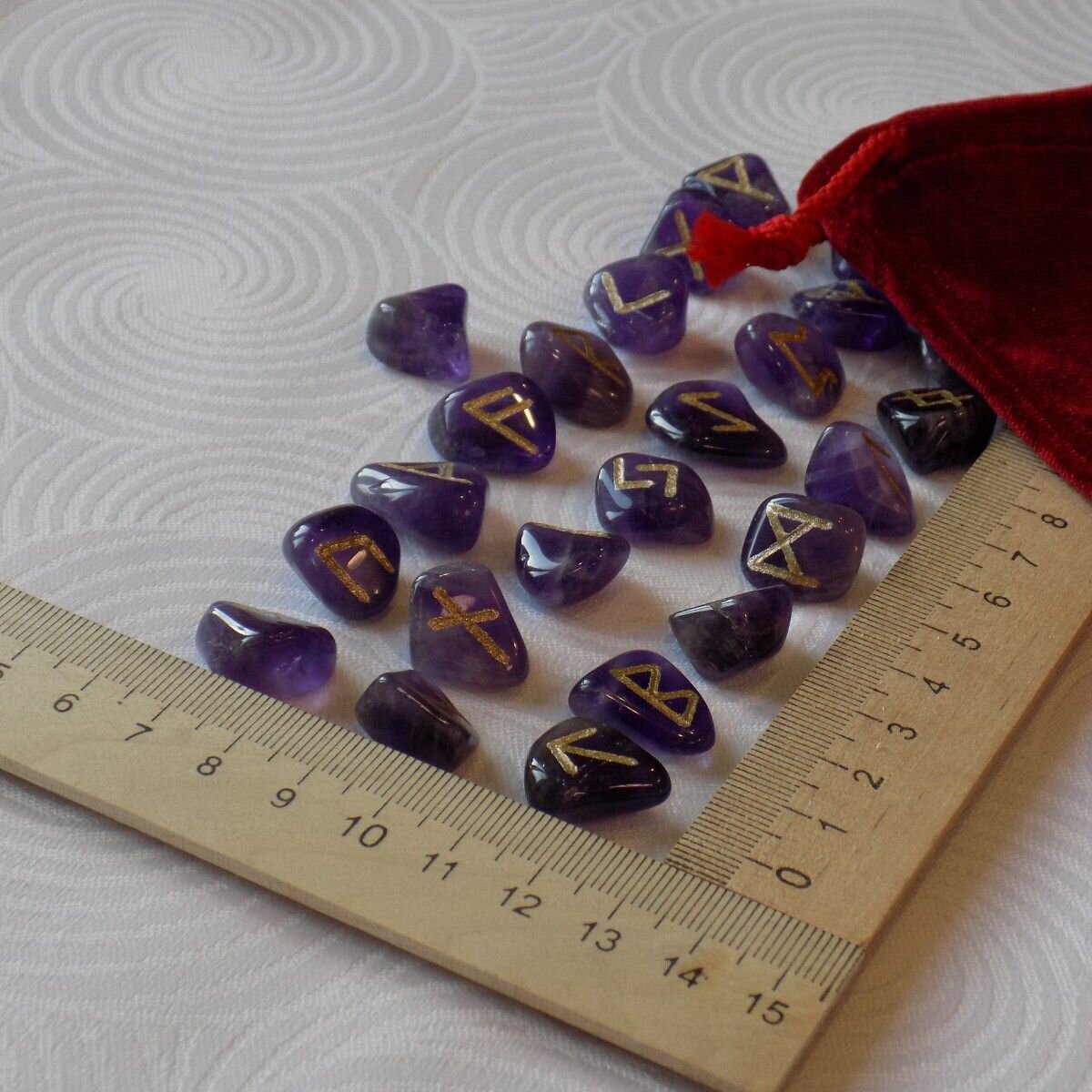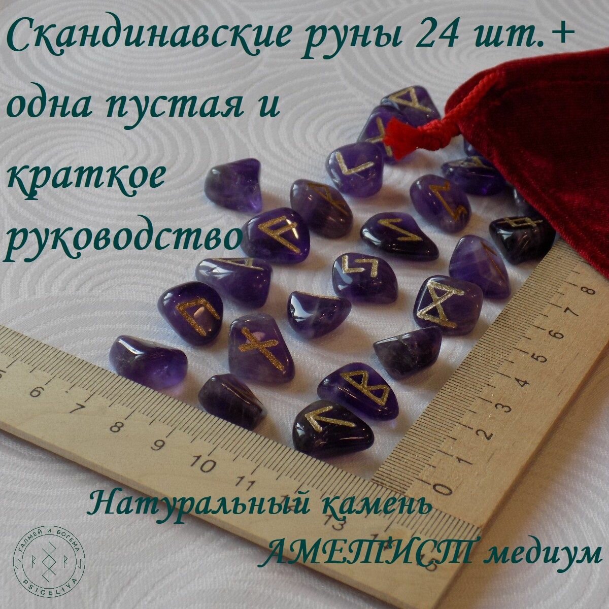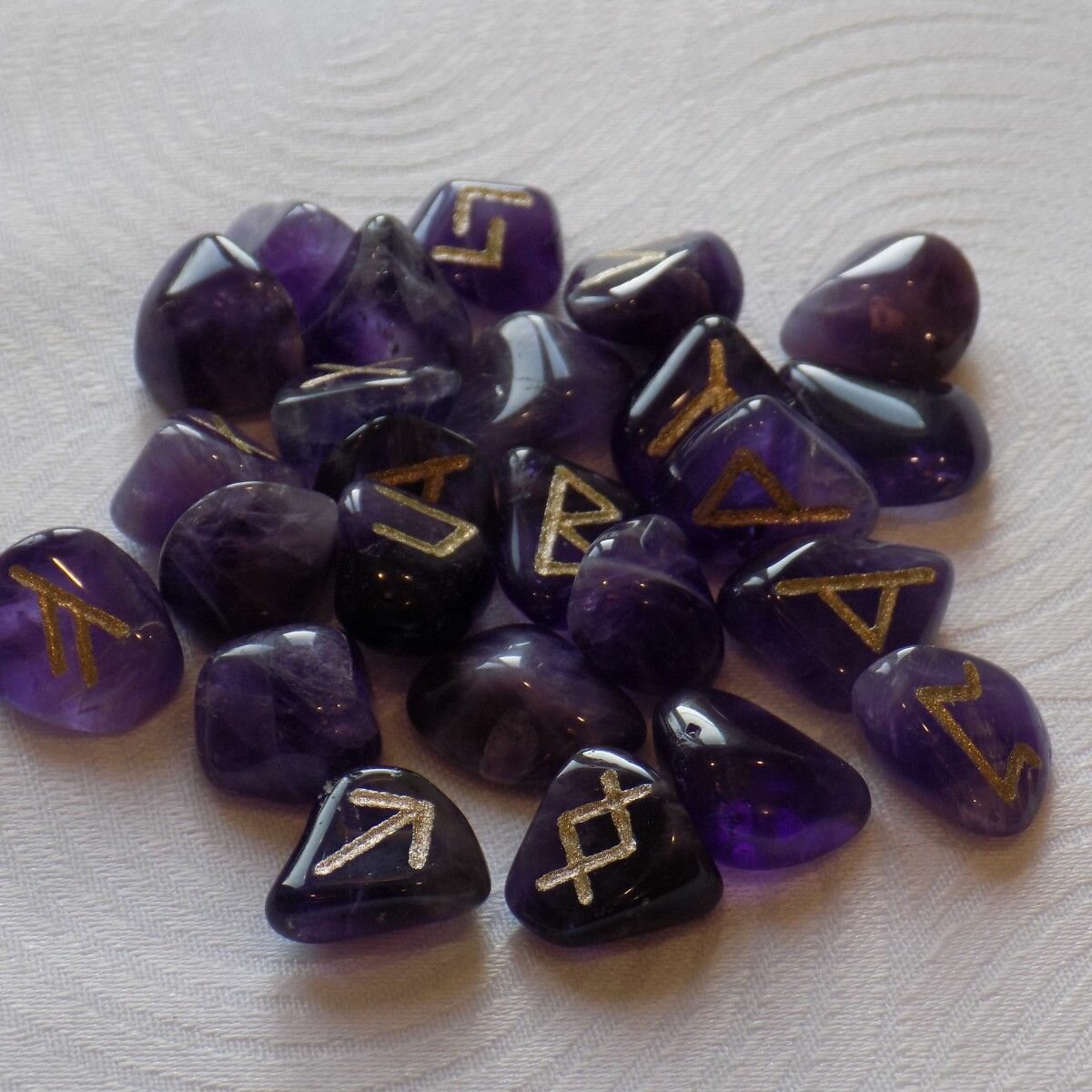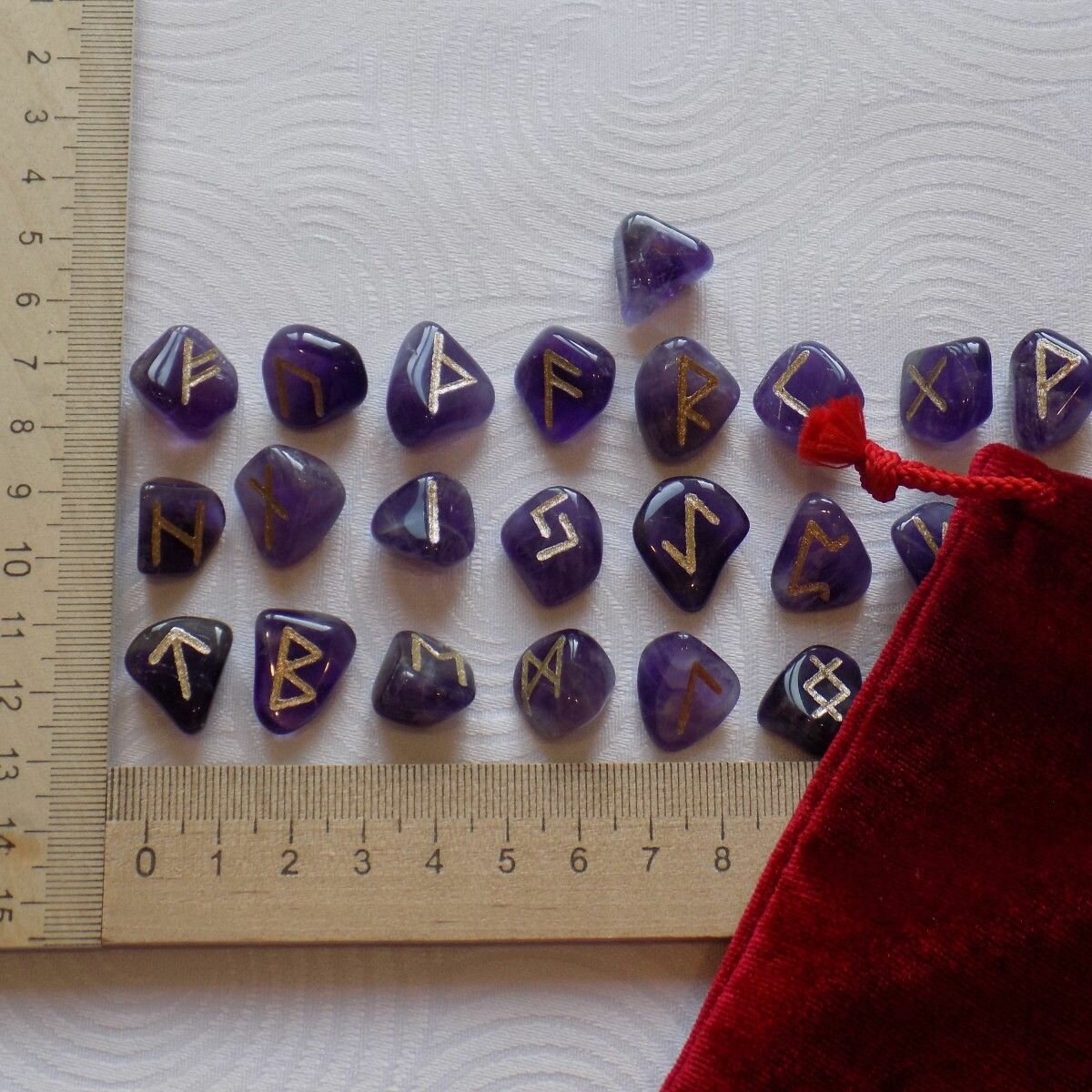 Скандинавские руны ручной работы (ручная гравировка, канавка) на натуральном камне аметист медиум.