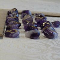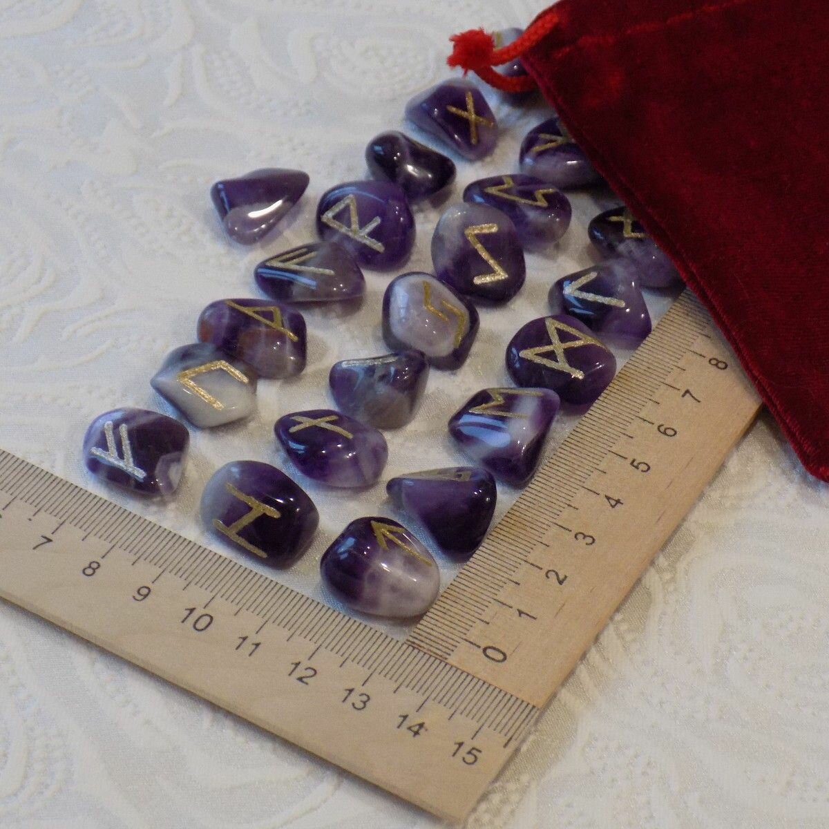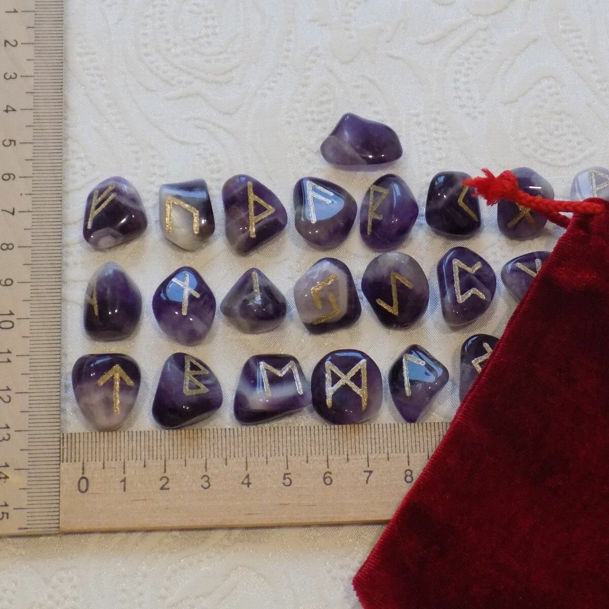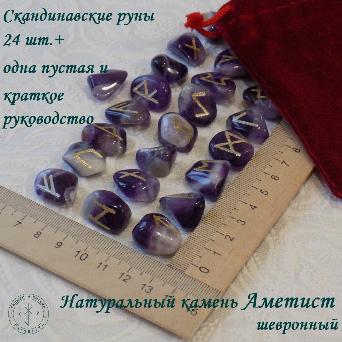 Скандинавские руны ручной работы (ручная гравировка, канавка) на натуральном камне аметист шеврон.