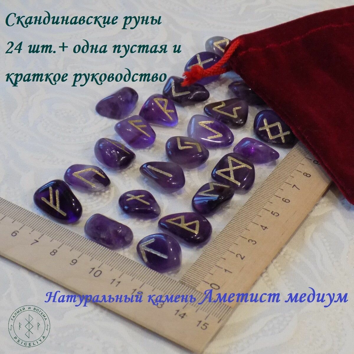 Прошу обратить внимание на то, что покупка рунического набора не должна быть сравнима с покупкой товаров народного потребления. Покупая рунический набор, Вы взаимодействуете с тонкими материями, подумайте прежде чем совершать покупку, прочтите аннотацию внимательно, также внимательно рассмотрите фото и видео. Для того, чтобы Вы понимали размер камней я делаю несколько фото: с линейкой, в ладони, а также прописываю размеры камней, которые были замерены с помощью штангенциркуля. Гравировка производится с помощью гравера и алмазной шарошки, покраска, соответственно, тоже ручная, вернее будет сказано, что канавка заполняется краской. Вы приобретете рунический набор напрямую от мастера, т.е. от меня, зовут меня Наталья Владимировна. Если, у Вас возникли вопросы задайте их мне через кнопку «Написать в магазин», я всегда отвечу, единственное, что, возможно, не сразу, т.к. «широка страна моя родная», не забывайте про часовые пояса, я нахожусь в Новосибирске.