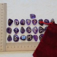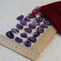 Скандинавские руны ручной работы (ручная гравировка, канавка) на натуральном камне аметист медиум.