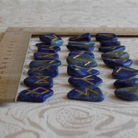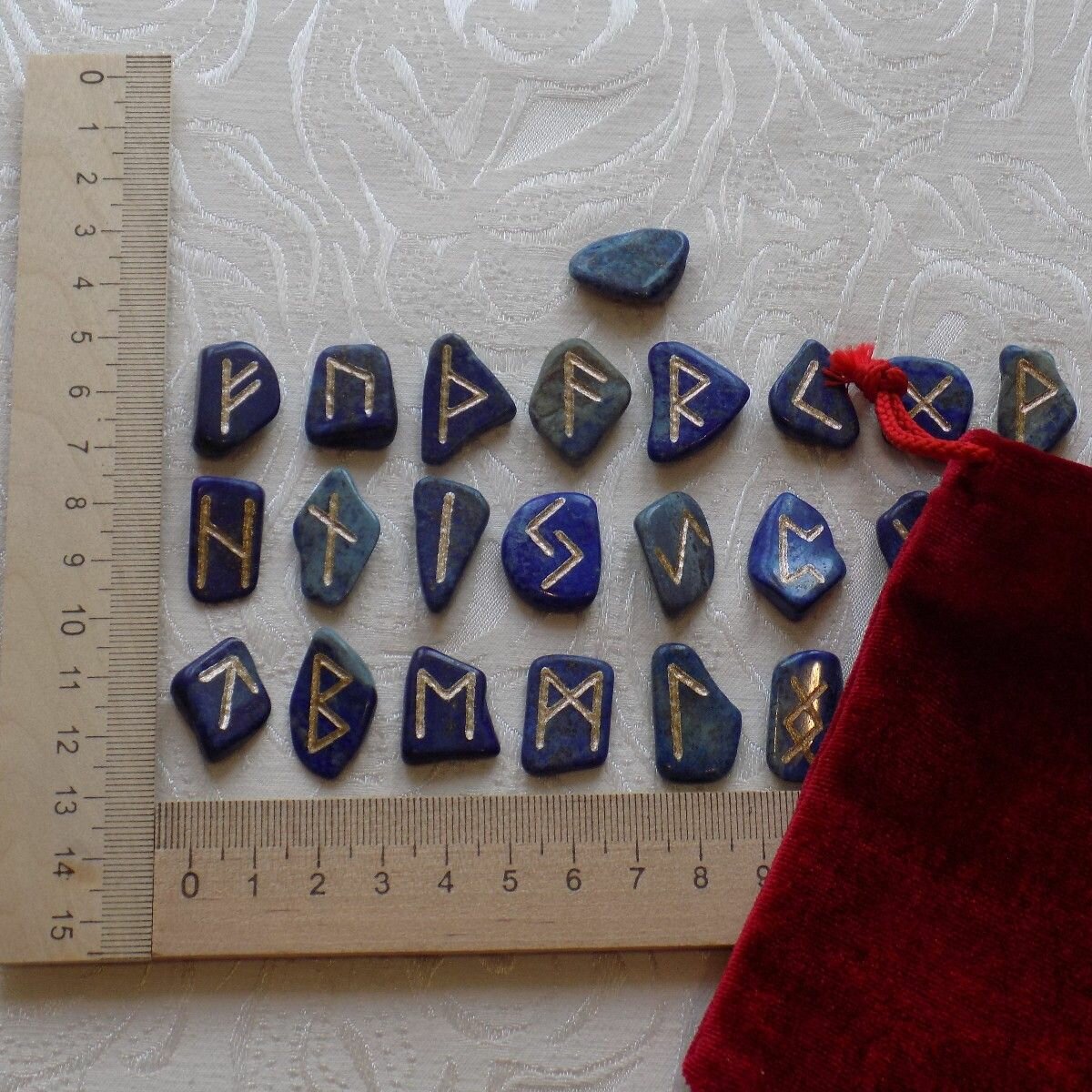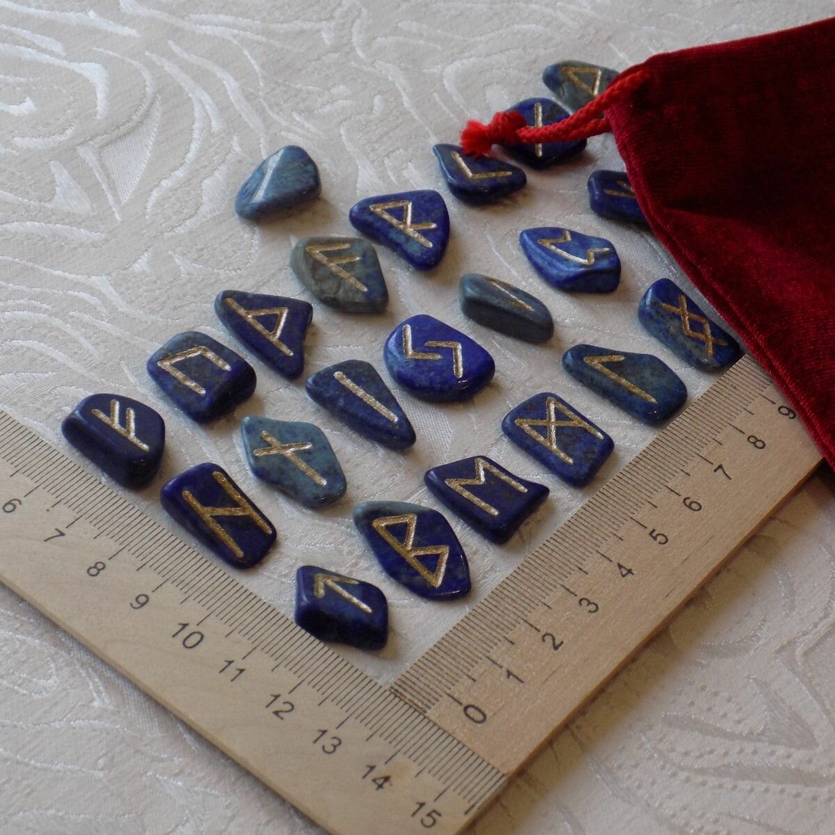 Скандинавские руны ручной работы (ручная гравировка, канавка) на натуральном камне лазурит.