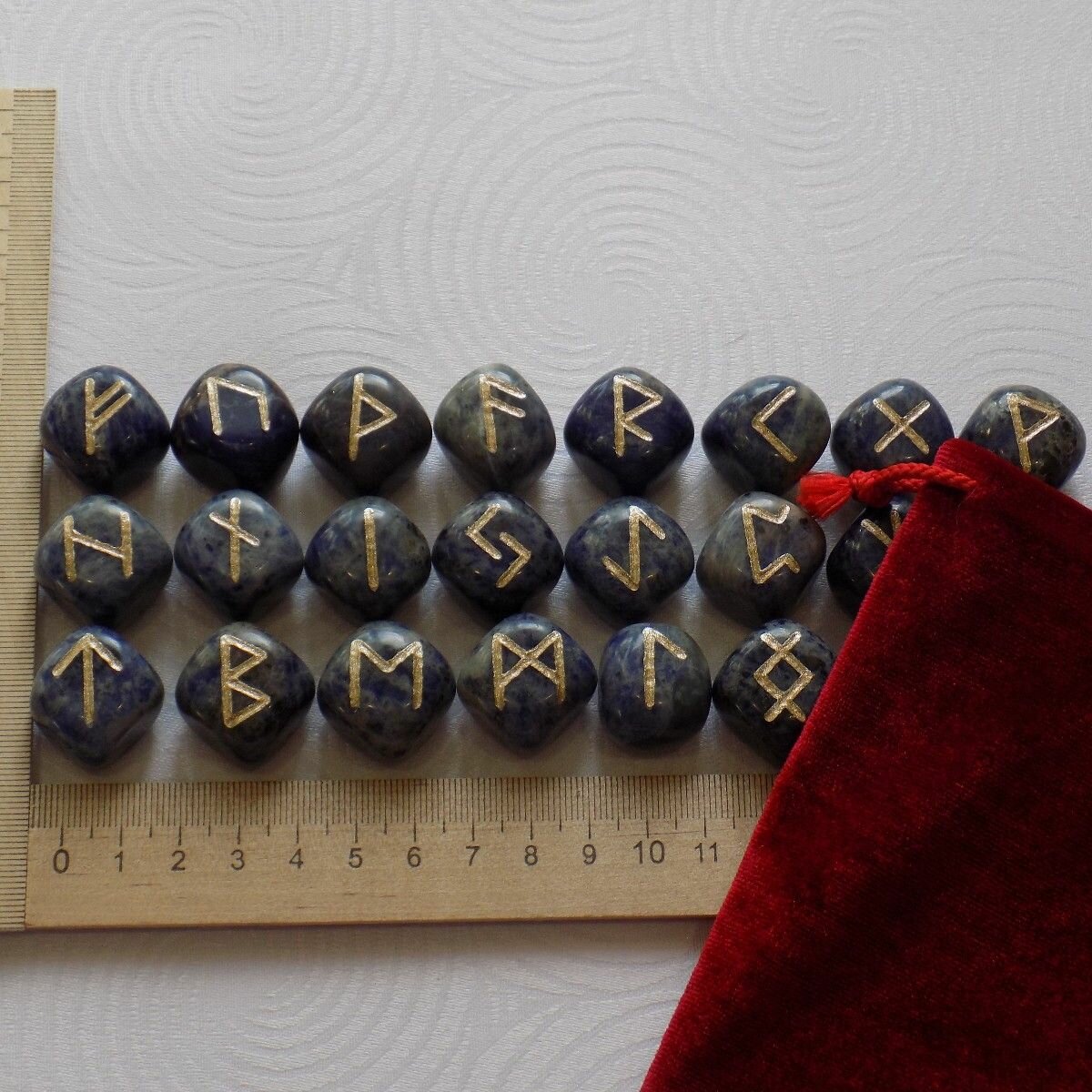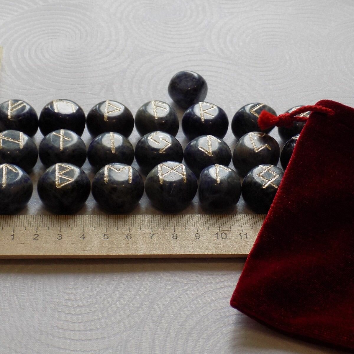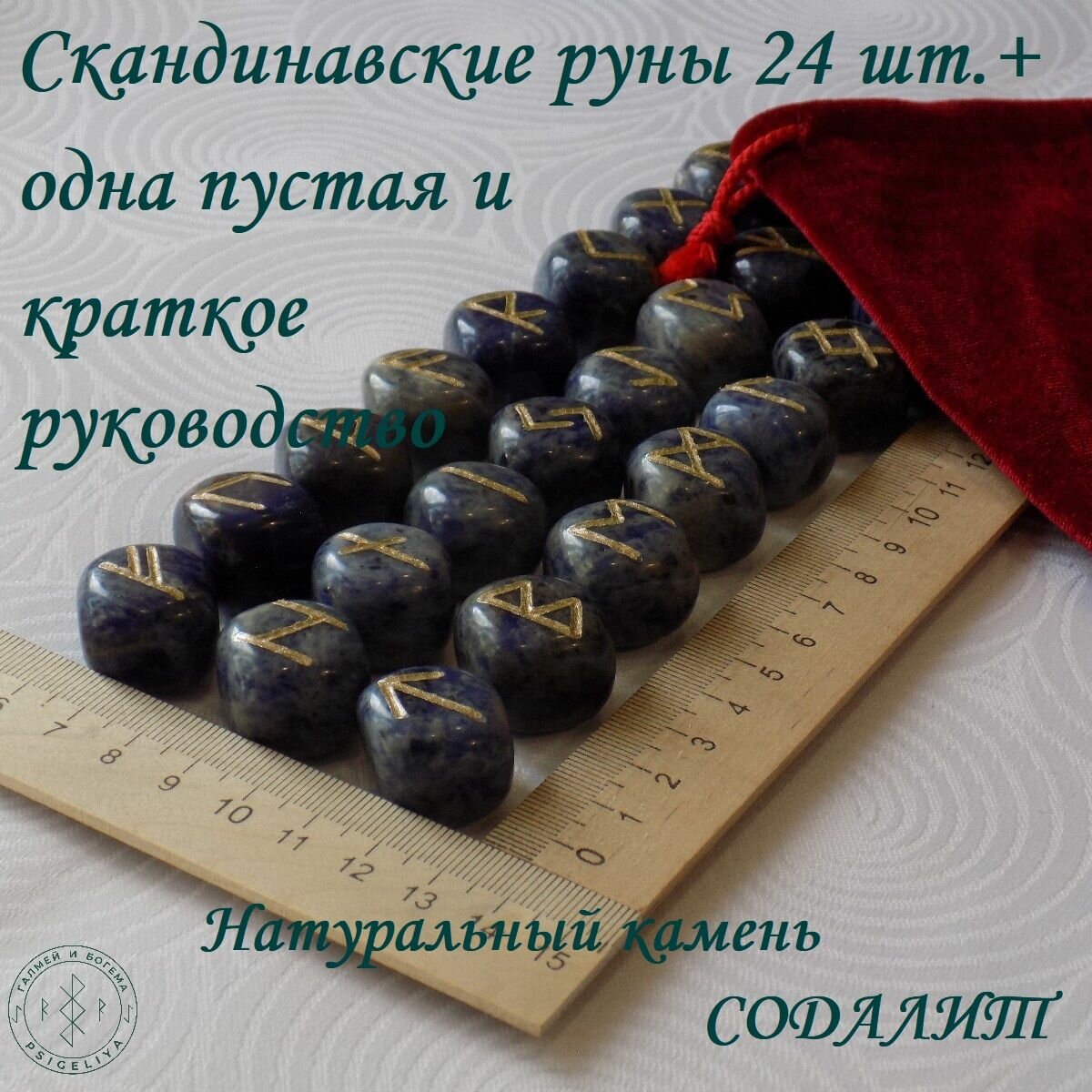 Скандинавские руны ручной работы (ручная гравировка, канавка) на натуральном камне содалит.