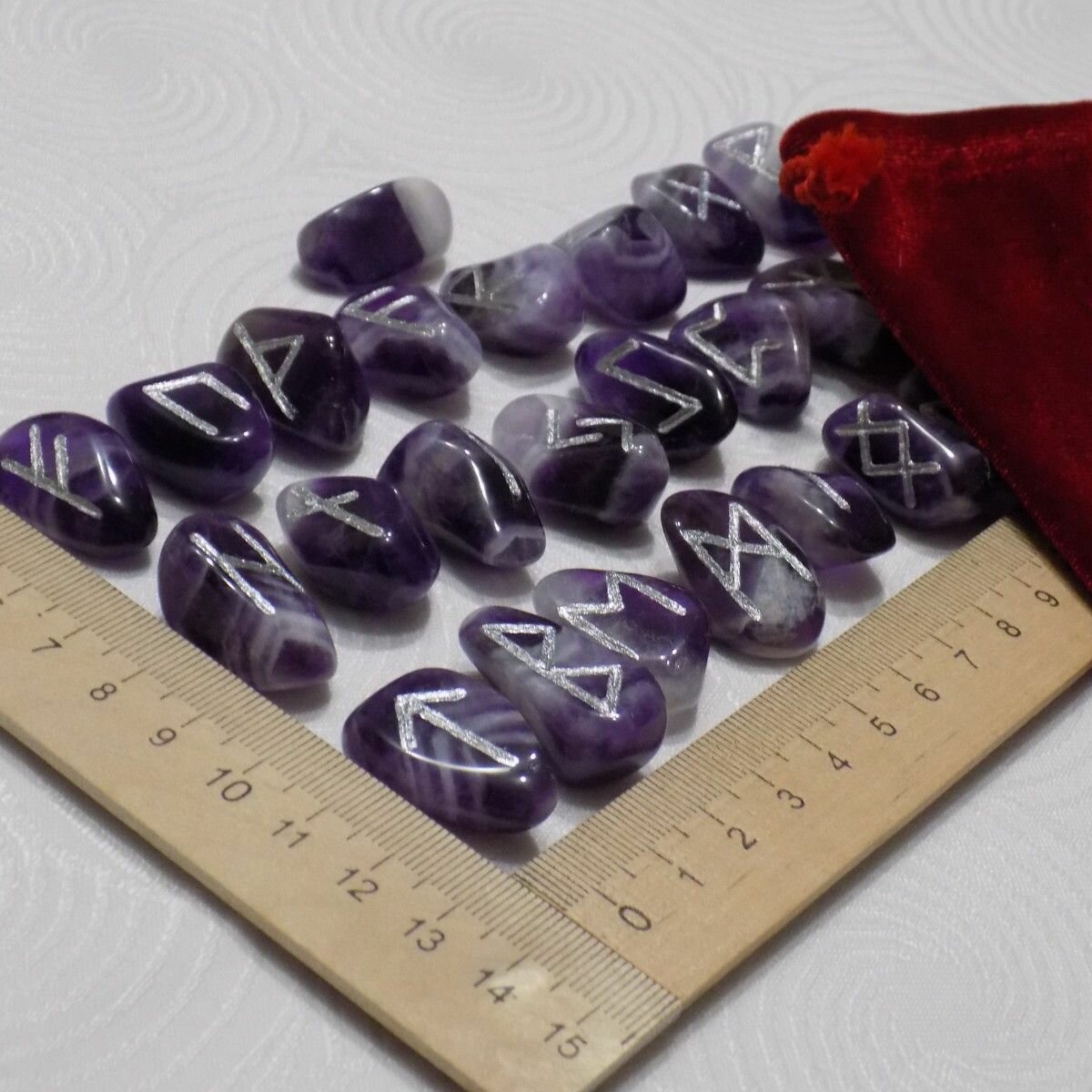 Скандинавские руны ручной работы (ручная гравировка) на натуральном камне аметист шеврон.
