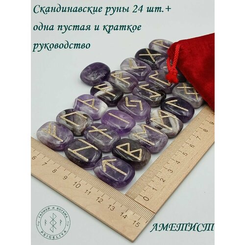 Скандинавские руны ручной работы (ручная гравировка, канавка, на фото это можно увидеть) на натуральном камне аметист.