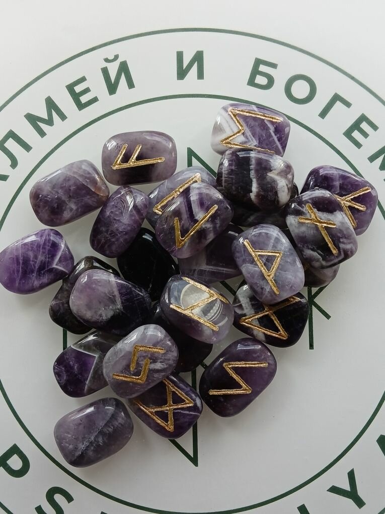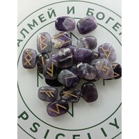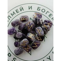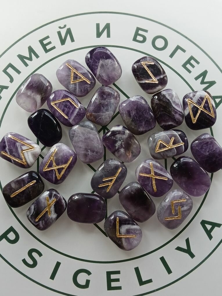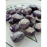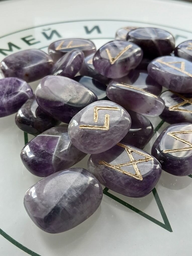 Скандинавские руны ручной работы (ручная гравировка, канавка, на фото это можно увидеть) на натуральном камне аметист.