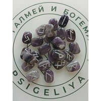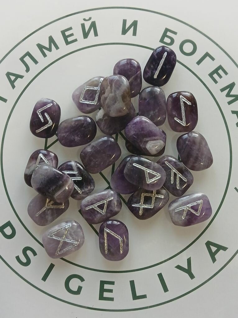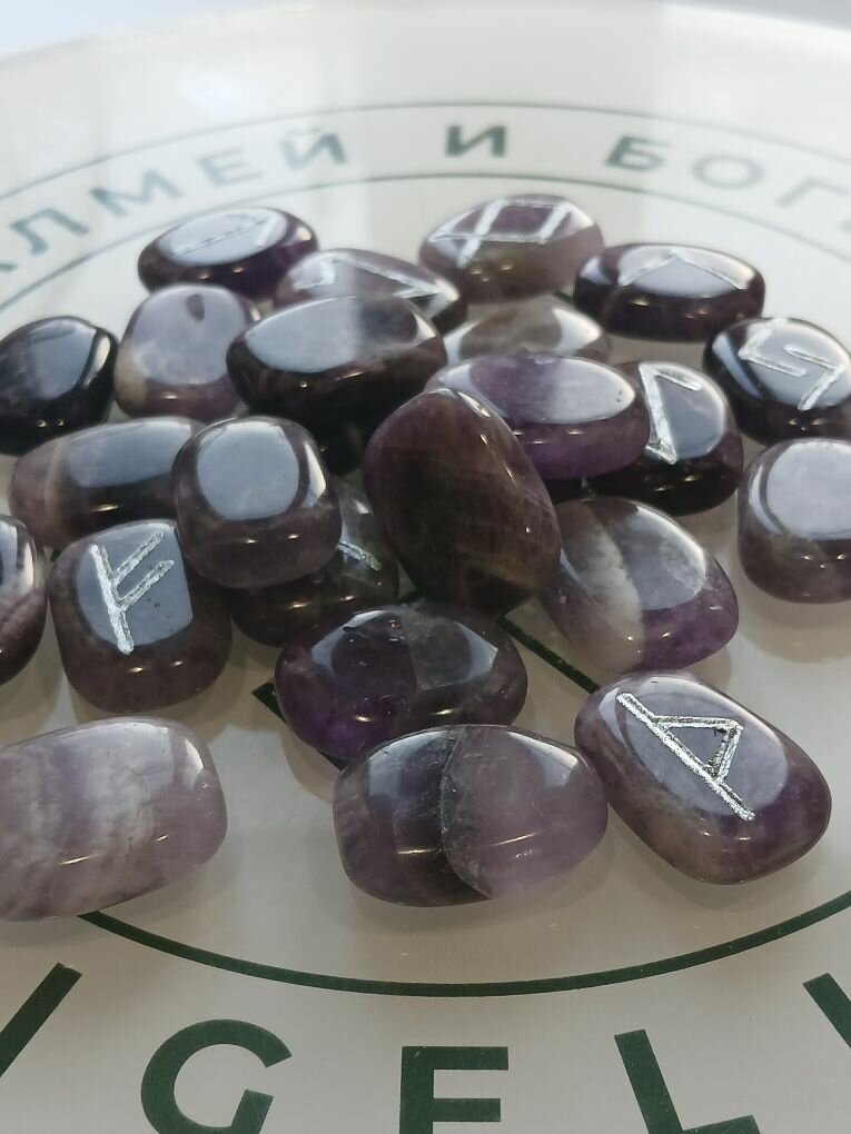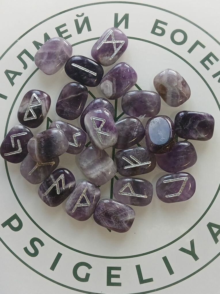 Скандинавские руны ручной работы (ручная гравировка, канавка, на фото это можно увидеть) на натуральном камне аметист.
