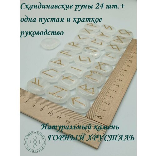 Скандинавские руны ручной работы (ручная гравировка, канавка) на натуральных камнях: горный хрусталь.