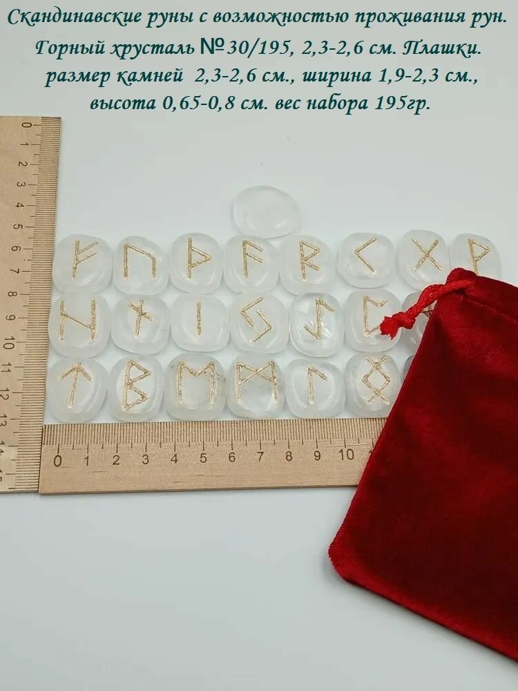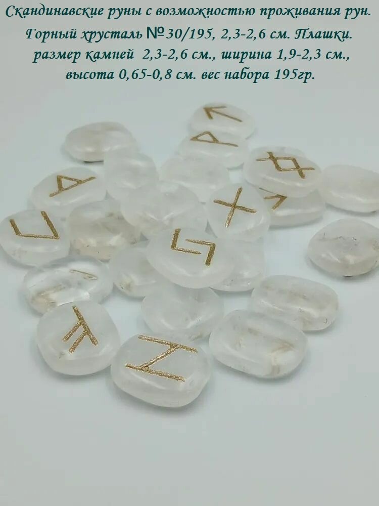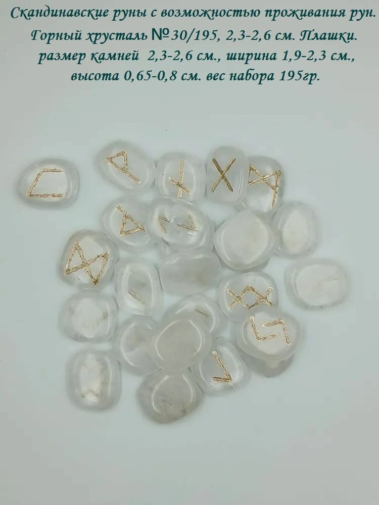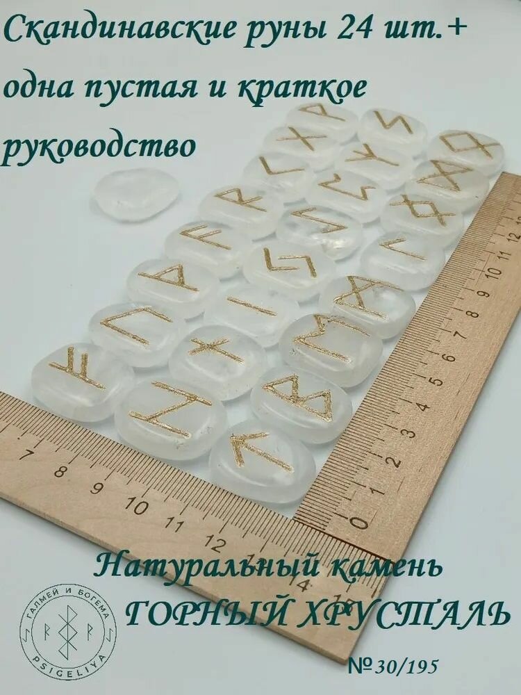 В данной карточке товара представлены наборы произведенные из горного хрусталя (плашки), покрытые безопасной краской-эмалью под золото. На каждом фото написан номер рунического набора, а также размеры плашек. Если, Вы примите решение купить один из этих наборов, то, пожалуйста, его номер напишите мне через кнопку "Написать в магазин", она находится сразу под фото. По умолчанию я отправлю набор из данной линейки тот, который был изготовлен раньше остальных. Заострите на этом внимание, пожалуйста.