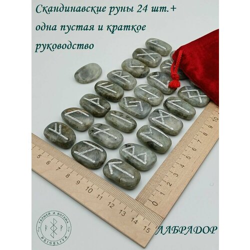 Скандинавские руны ручной работы (ручная гравировка, канавка) на натуральном камне лабрадор.