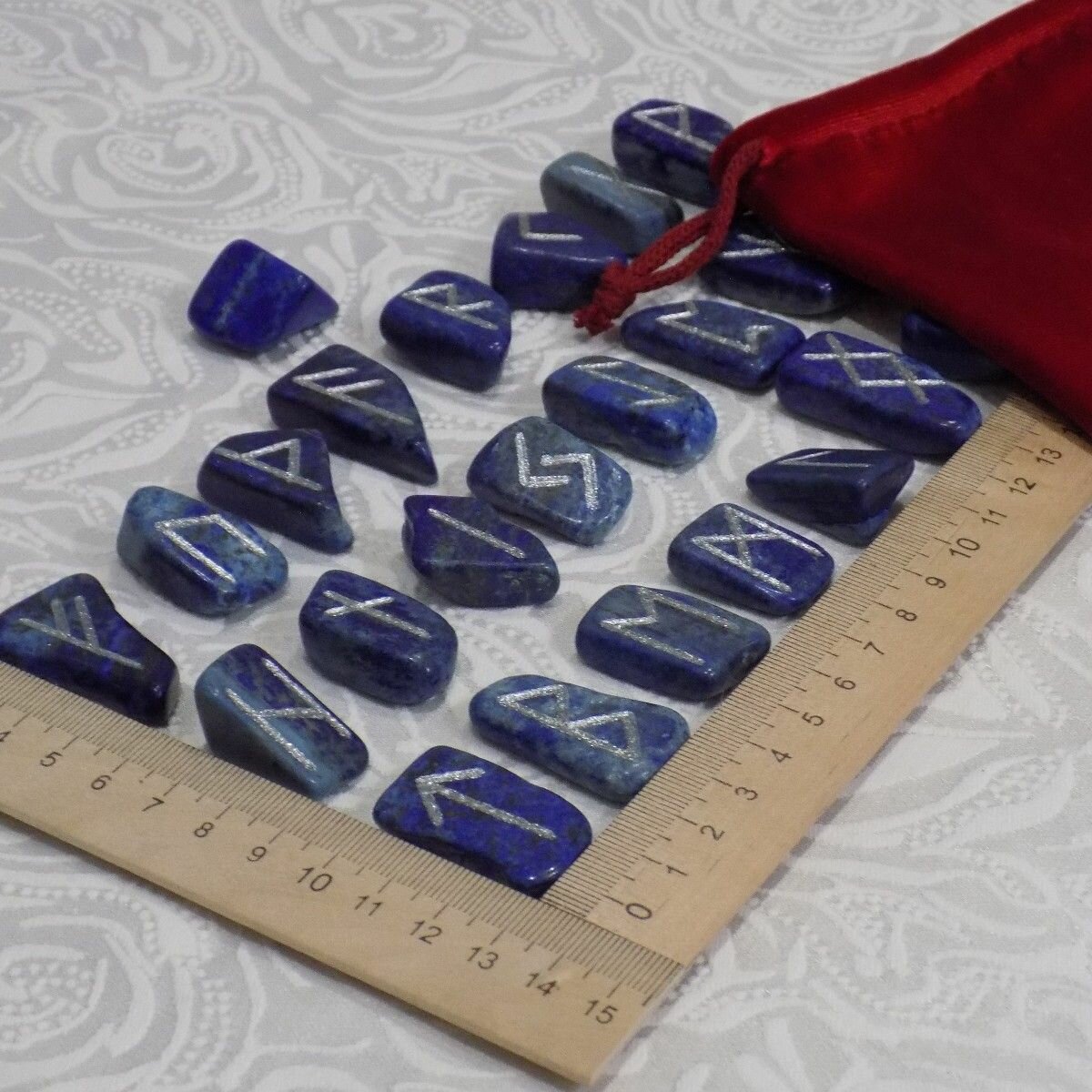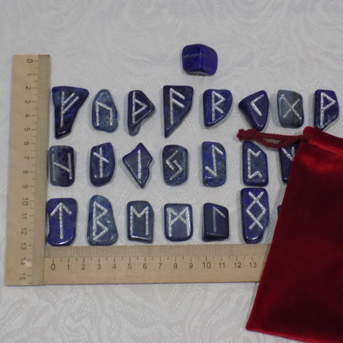 Скандинавские руны ручной работы (ручная гравировка, канавка) на натуральном камне лазурит.