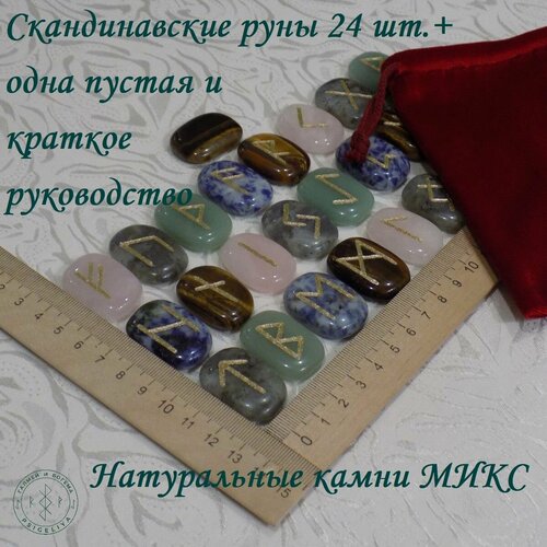 В комплекте также: Скандинавские руны 25шт, красный бархатный (стрейч) мешочек, краткое руководство, тюбик с небольшим количеством краски для нанесения в случае повреждения защиты.