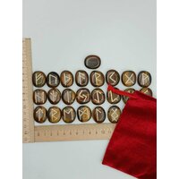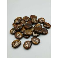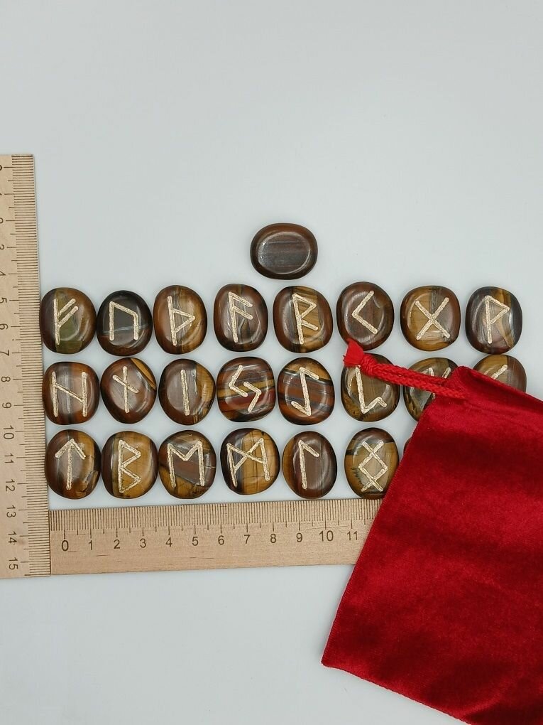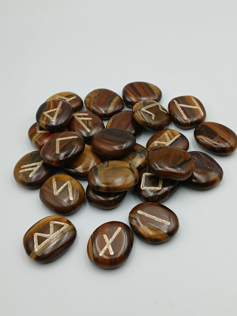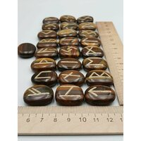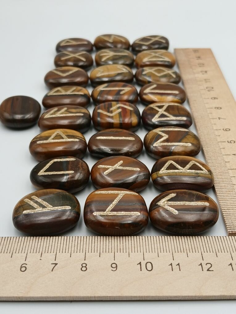 Скандинавские руны ручной работы (ручная гравировка, канавка, на фото это можно увидеть) на натуральном камне тигровый глаз.