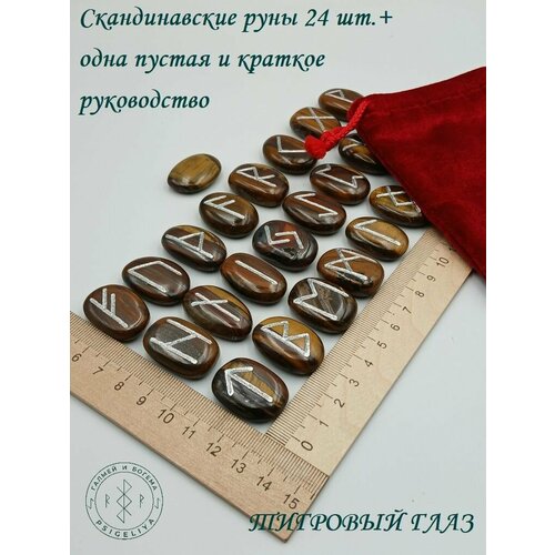 Скандинавские руны ручной работы (ручная гравировка, канавка, на фото это можно увидеть) на натуральном камне тигровый глаз.