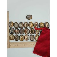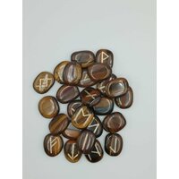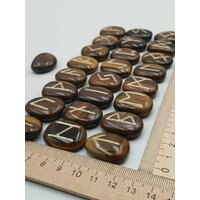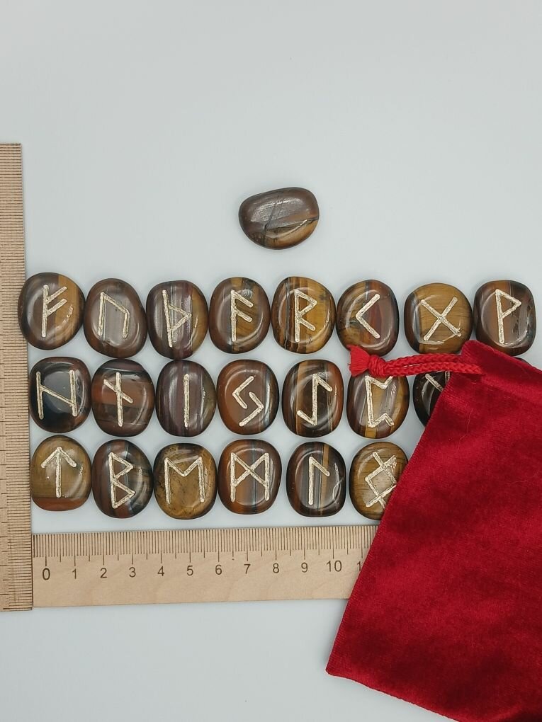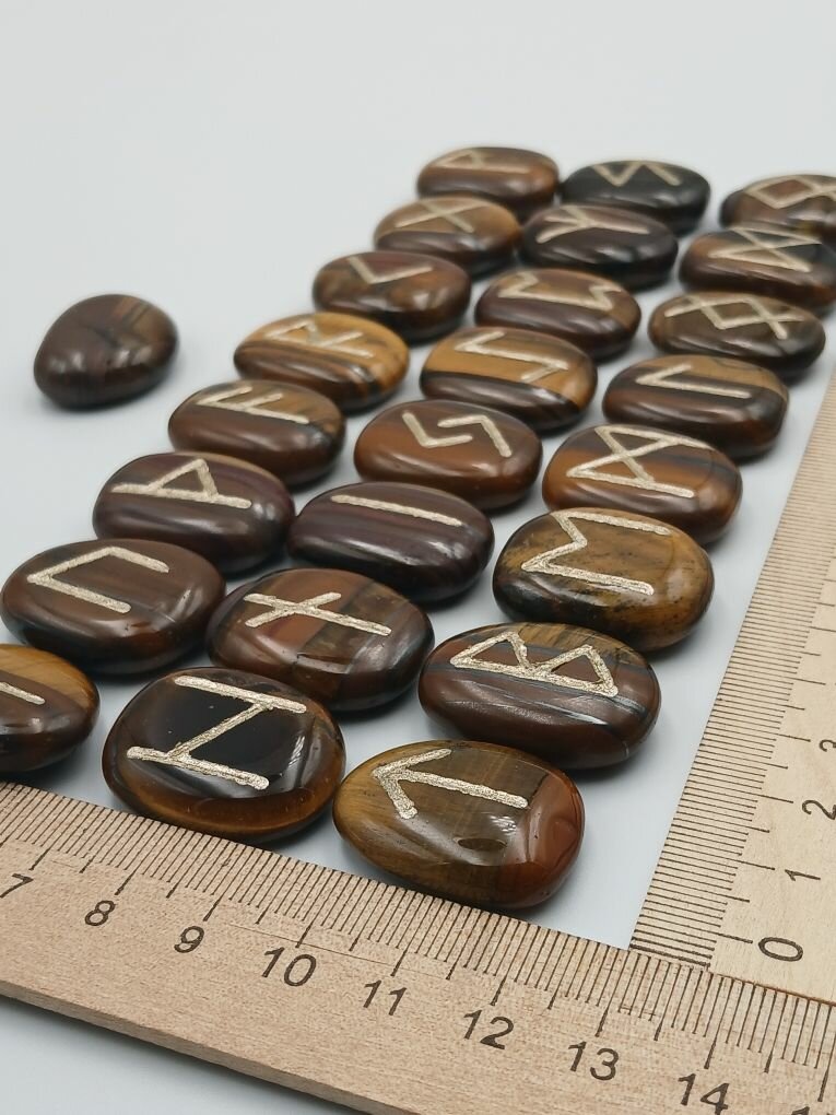 Скандинавские руны ручной работы (ручная гравировка, канавка, на фото это можно увидеть) на натуральном камне тигровый глаз.
