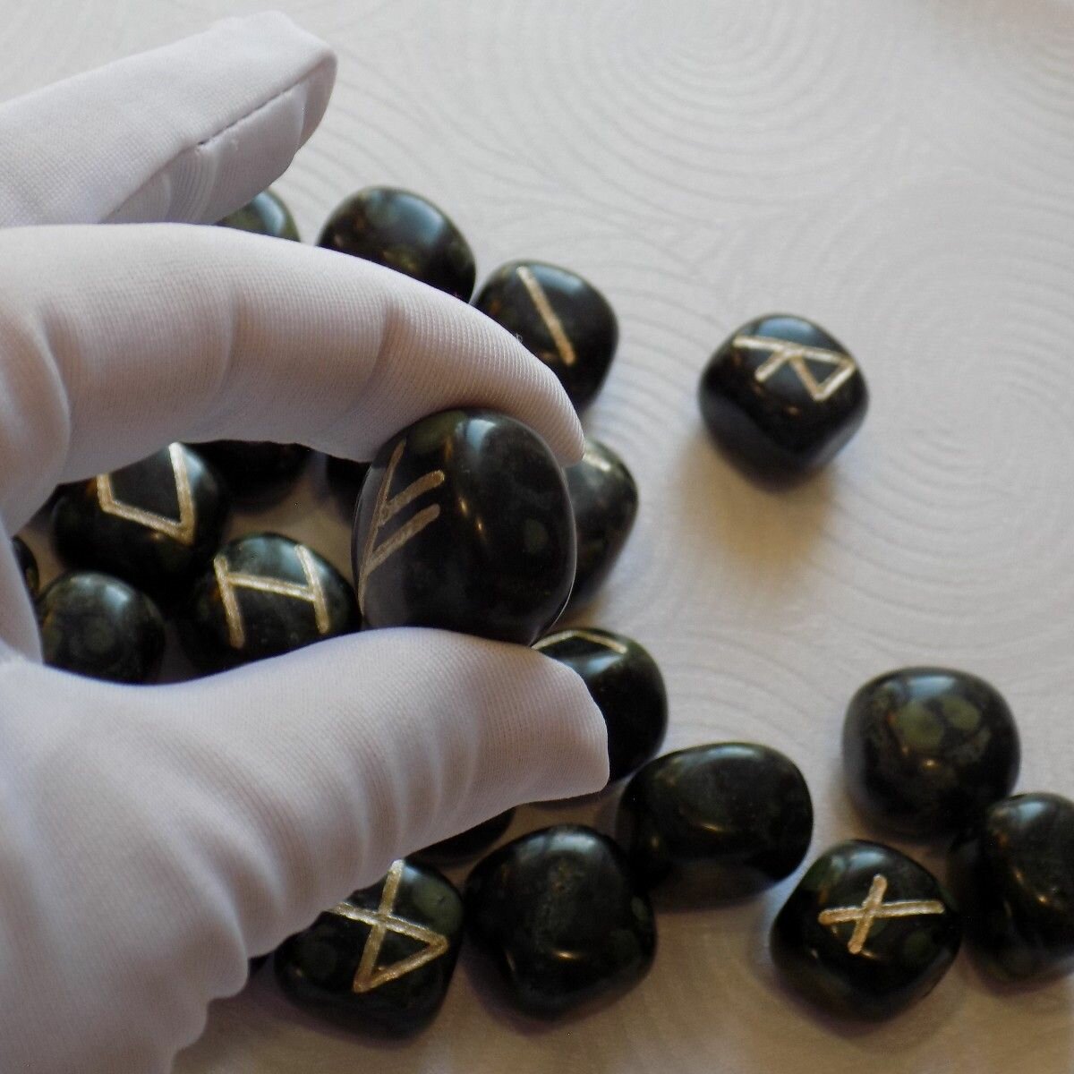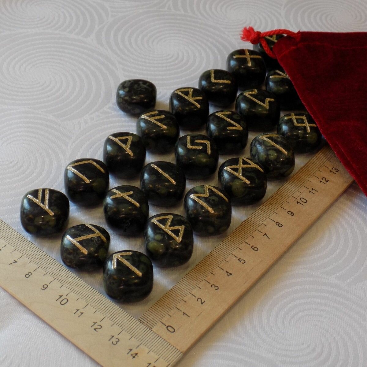 Скандинавские руны ручной работы (ручная гравировка, канавка) на натуральном камне яшма крокодиловая "Kambaba".