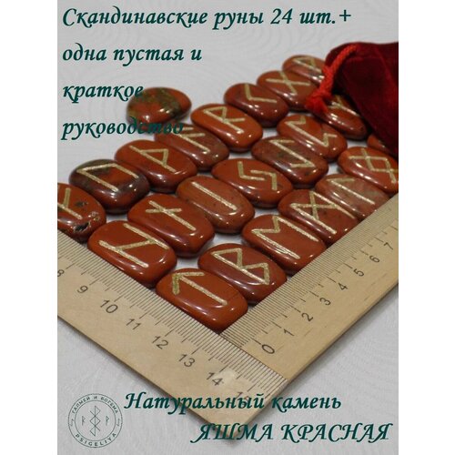 Скандинавские руны ручной работы (ручная гравировка, канавка) на натуральном камне яшма красная.