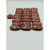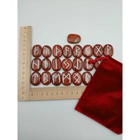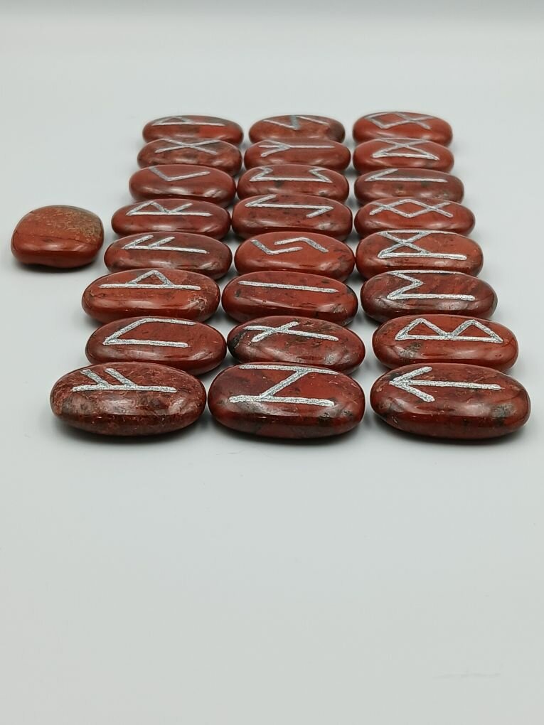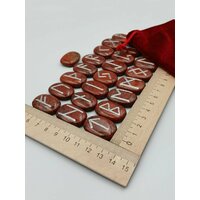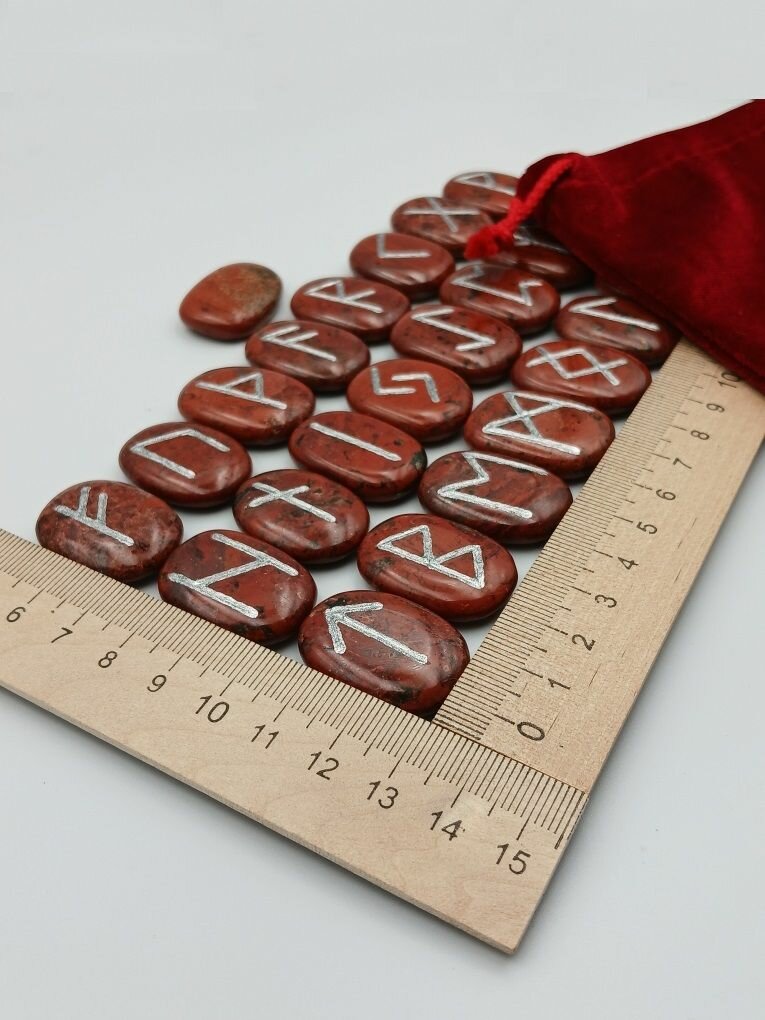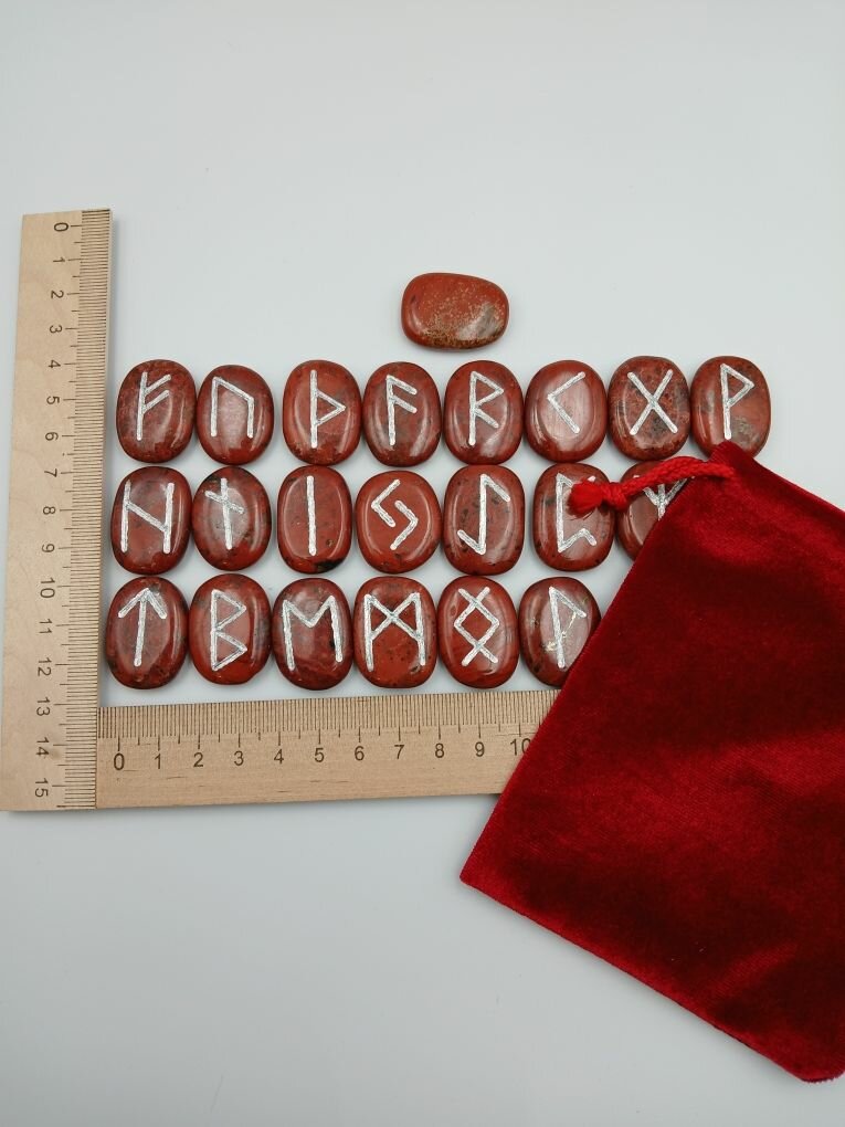 Скандинавские руны ручной работы (ручная гравировка, канавка) на натуральном камне яшма красная.