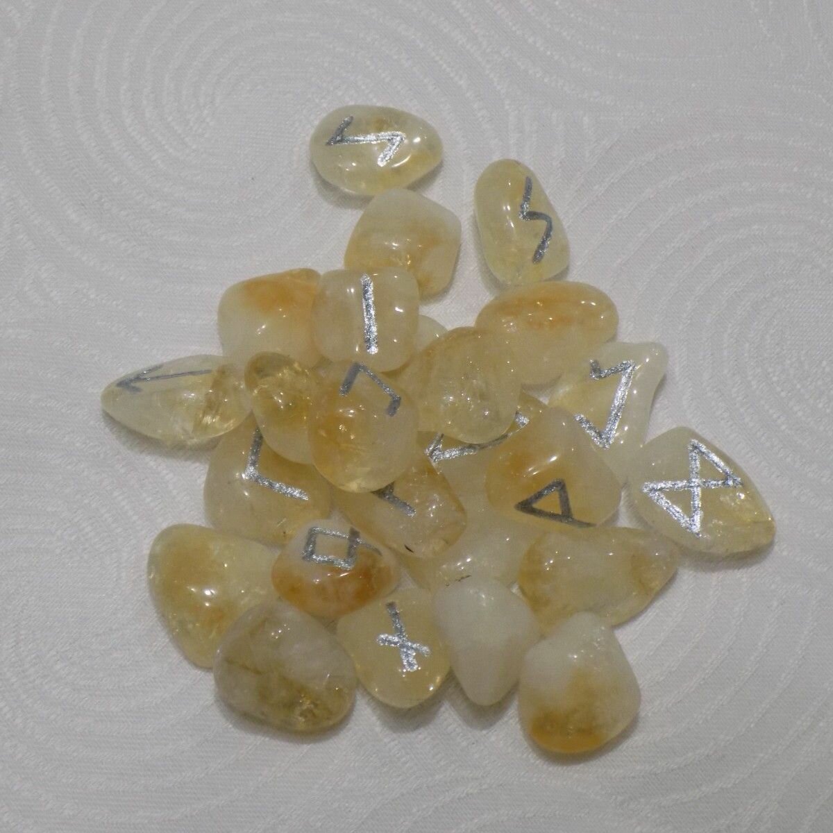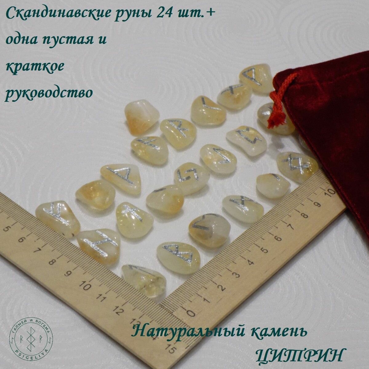 Скандинавские руны ручной работы (ручная гравировка, канавка) на натуральном камне цитрин.