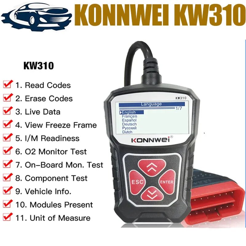 Купить Сканер OBD2 KONNWEI KW310 для автомобиля, сканер OBD 2, диагностический инструмент, Автомобильный сканер, автомобильные инструменты, русский язык PK Elm327, Черный с доставкой по всей России. Сканер OBD2 KONNWEI KW310 для автомобиля, сканер OBD 2, диагностический инструмент, Автомобильный сканер, автомобильные инструменты, русский язык PK Elm327, Черный: сравнение цен, характеристики, фото, актуальное наличие и цены.