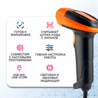 Проводной сканер штрих кода МОЙPOS MSC-6607C2D. Ручной USB сканер штрихкодов используется в магазинах с большой проходимостью и на производственных складах. 2d сканер одобрен системой «Честный знак». Доступна работа в ЕГАИС, ПВЗ, Маркировка. Превосходно считывает, и передает данные о маркировке табачный и алкогольной продукция. Высокий уровень ударопрочности класса IP 54 делает новый ручной сканер Мой POS 6607 незаменимым помощником для сканирования товаров на высоких полках. Способен считывать и распознавать штрихкоды практически с любой поверхности, в том числе с экрана мобильного телефона, смартфона, монитора. Великолепное качество сканирования даже если повредить поверхность штрих кода. Скорость сканирования более 100 сканов в секунду. Проводной сканер штрих кодов качество и быстро считывает 2D штрих коды: QR Code, Data Matrix, PDF417, Aztec, Maxicode и 1D: UPC, EAN, JAN, ISBN/ISSN, Code 39, Codabar, IATA Code. QR code: PDF417, Data Matrix, Aztec, EAN-13,8, 128, EAN, data matrix, code 39, 128, UPC-A, E Codabar, баркод barcode scanner, image имидж. Удобная ручка из шероховатого abs-пластик не выскальзывает из рук и снимает напряжение с кисти при сканировании штрих кодов. LED подсветка сканера штрих кодов USB позволит эффективно и быстро считывать информацию в темных помещениях.