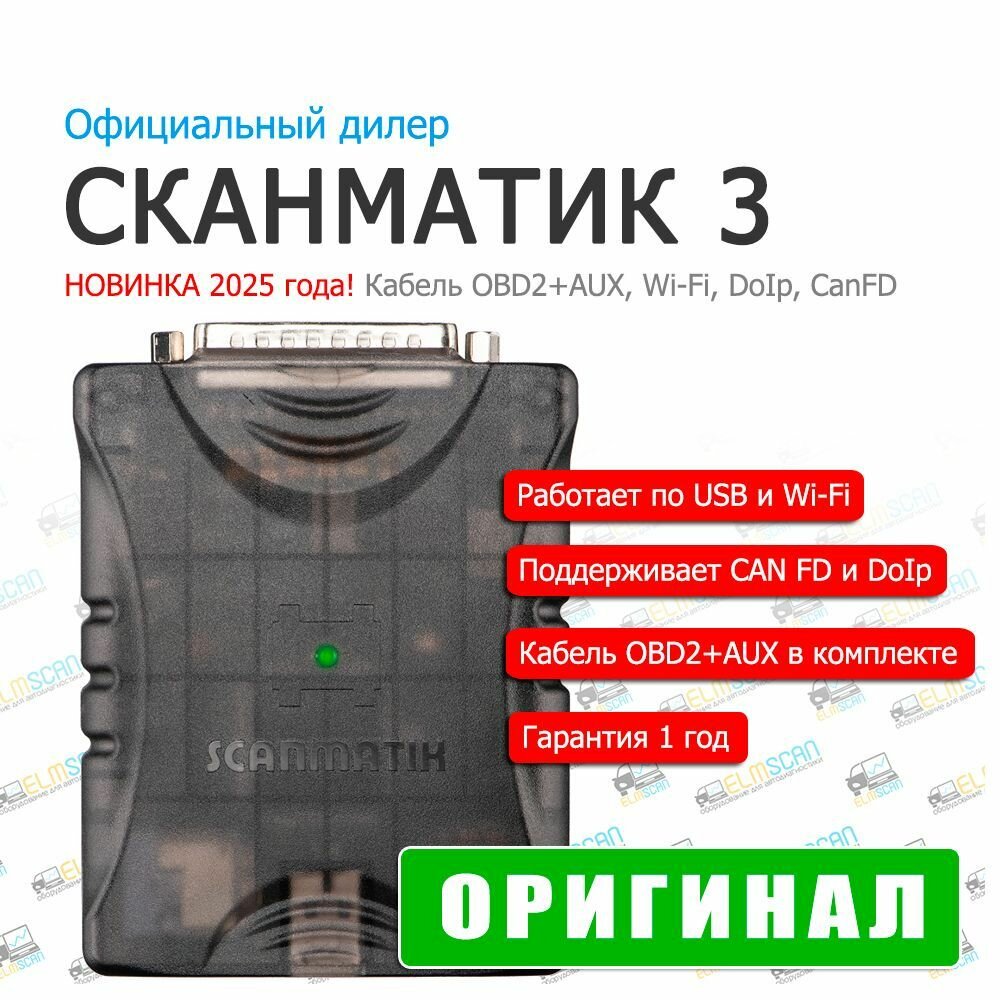 Сканматик 3 - новейшая версия популярного сканера Сканматик с поддержкой протоколов CAN FD и DOIP. Предназначен для диагностики и программирования электронных систем управления современных автомобилей отечественного и импортного производства.