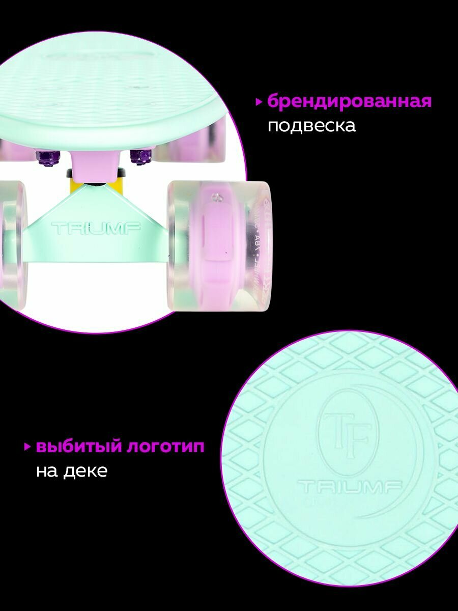 Скейтборд пластиковый Triumf Active TLS-401L Mint - прекрасный и лаконичный выбор для новичка, желающего разучить пару трюков, так и для профессионала, предпочитающего активный отдых на скейт-площадках.