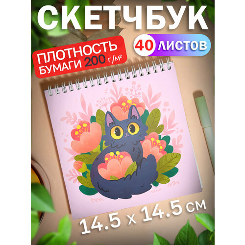 Купить Скетчбук для рисования скетчинга Котик 40 листов Подарок на новый год с доставкой по всей России.