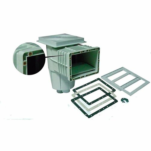 Скиммер выполнен из белого ABS-пластика. Размеры подключения 1½" внутренний, 2" наружный. Дополнительно заглушенное отверстие Ø50 мм внутренний, переливной патрубок Ø40 мм. Крышка квадратная. Модель выполнена для бассейна из бетона с лайнером, в комплект входит декоративная рамка. Крепление прижимного фланца у модели PA00249.1V осуществляется с помощью винтов в резьбовые латунные втулки. Рекомендованное применение: 1 скиммер на 25 м² водной поверхности.