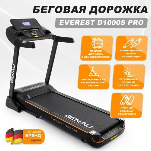 Складная беговая дорожка GENAU Everest D1000S Pro — домашняя, со всеми функциями коммерческих дорожек! Эта модель имеет ЖК-дисплей с ярко голубой подсветкой, клавиши быстрого переключения скорости и угла наклона, беспроводное считывание сердечного ритма, встроенные в поручни клавиши переключения скорости и угла наклона.