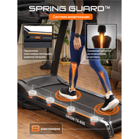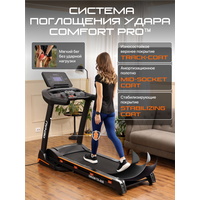 Коммерческое, четырехслойное беговое полотно с системой поглощения удара COMFORT PRO (толщина 2.2 мм) и 8 пружинных эластомеров Spring Guard снижают ударную нагрузку на позвоночник и суставы;
