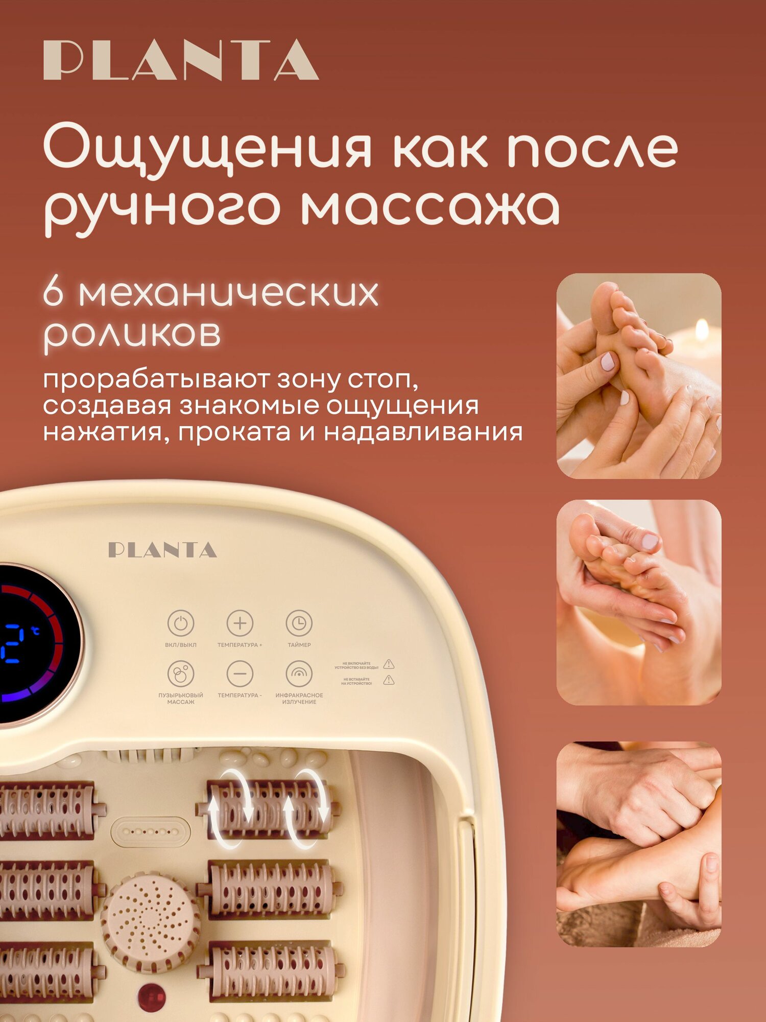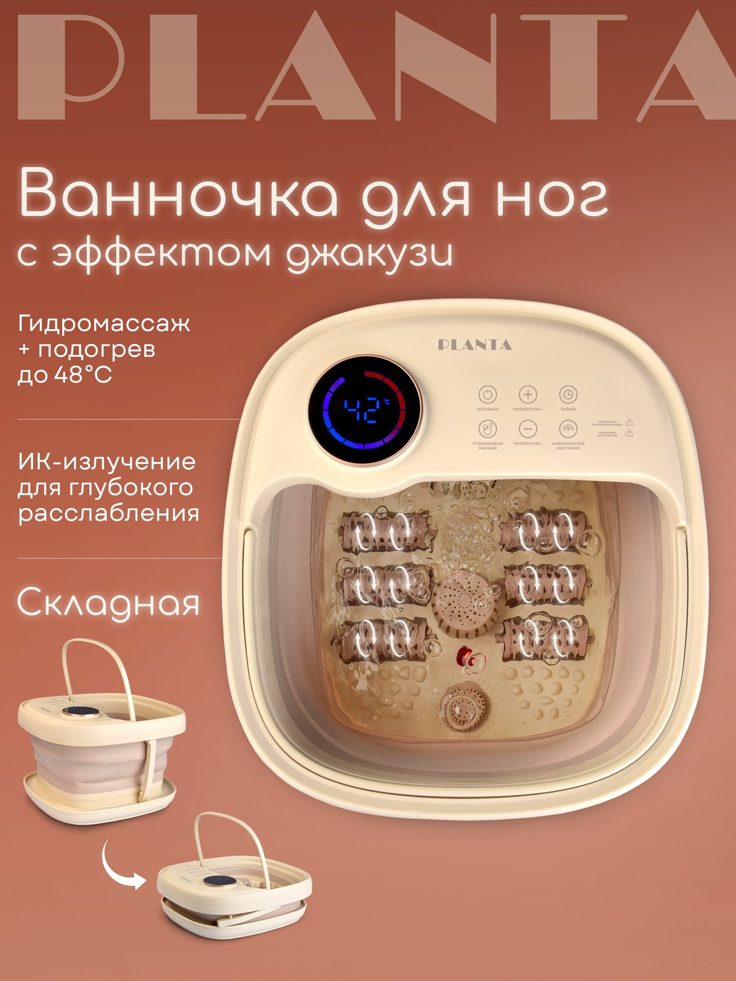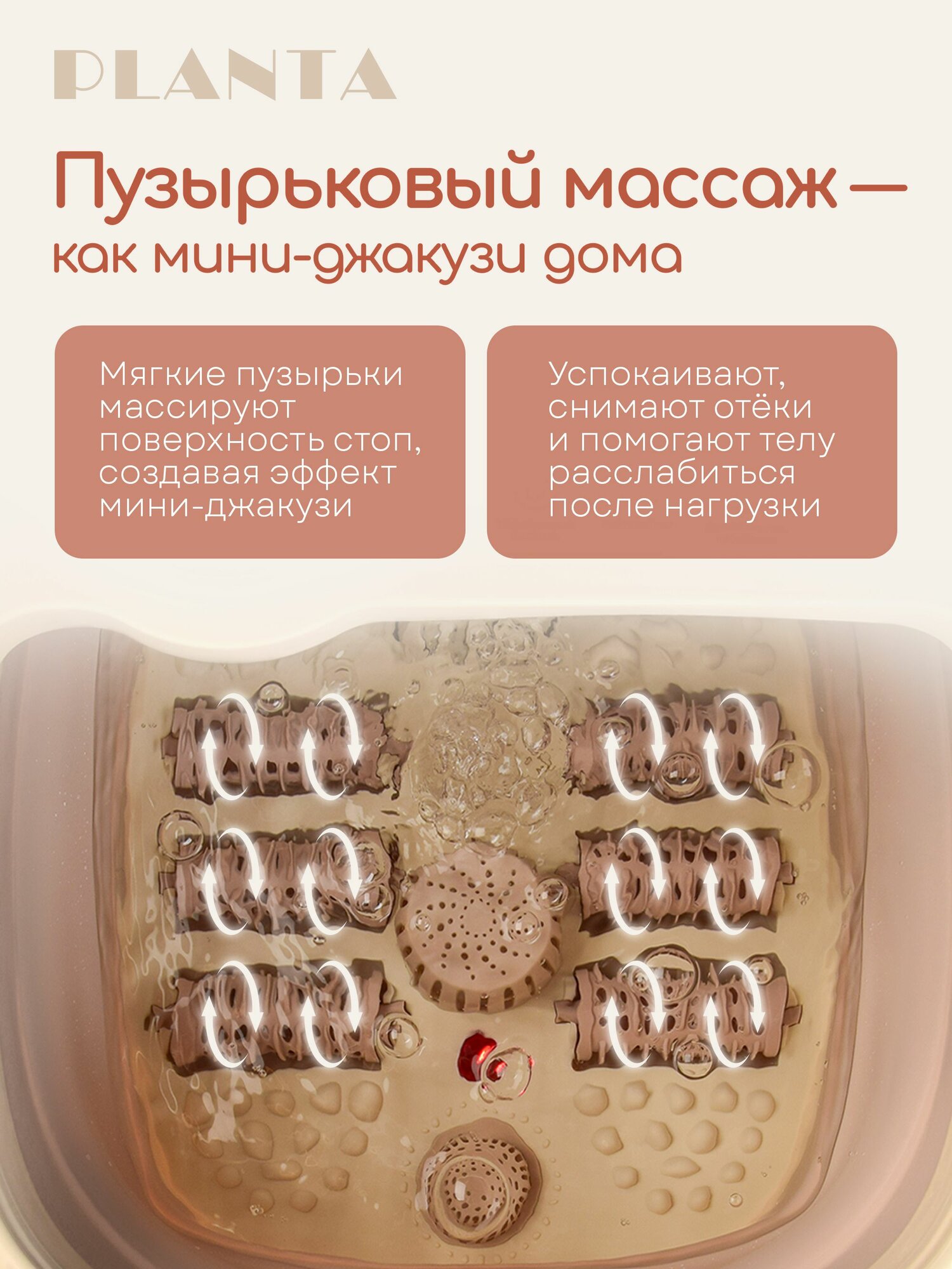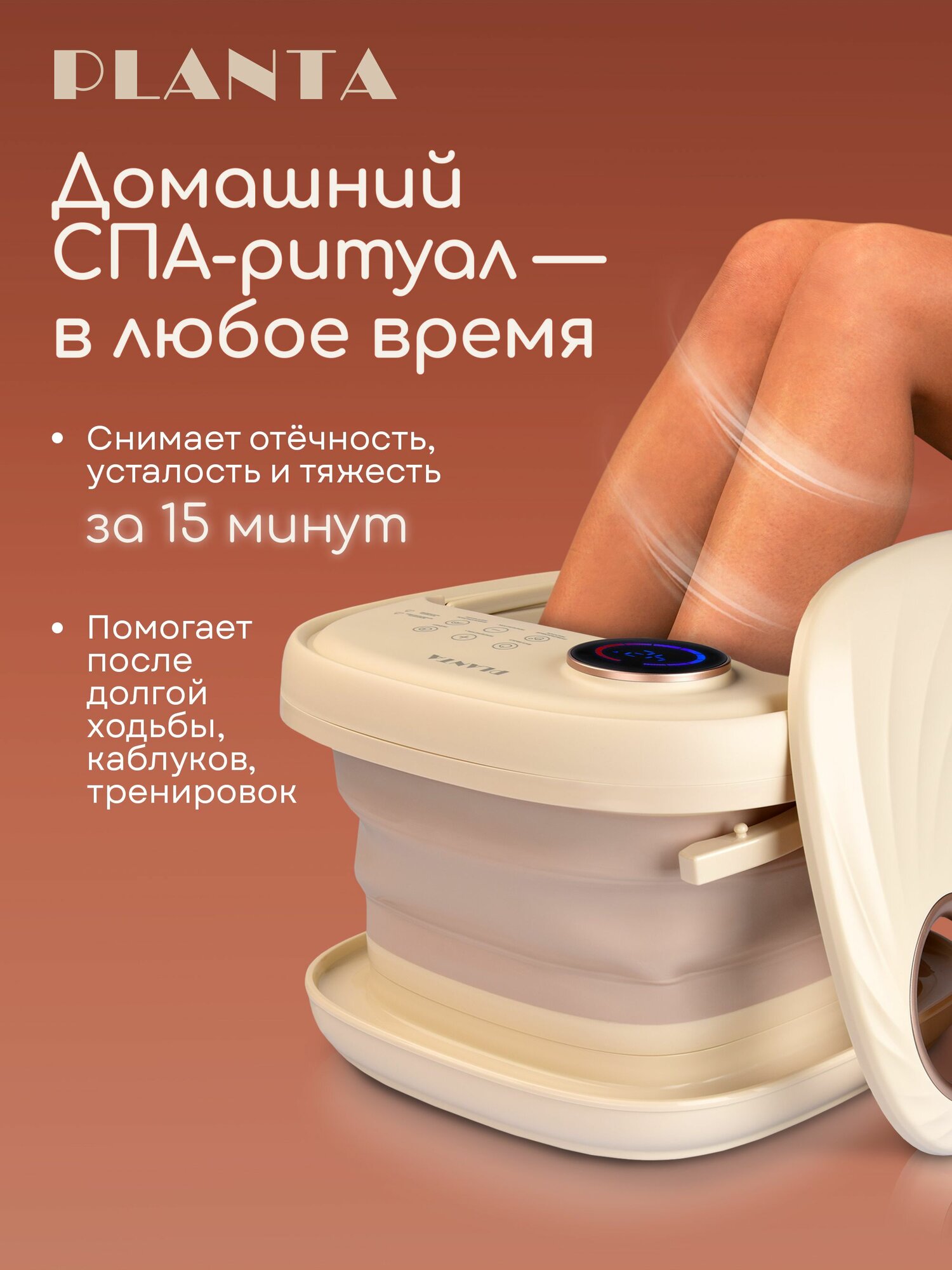 Гидромассажная складная ванночка для ног PLANTA MFS-500 - это универсальный массажер для ног, который обеспечит спа-процедуру по уходу за ногами в домашних условиях в любое удобное для вас время. Ванночка для ног складная MFS-500 имеет электронное управление и складную конструкцию. Компактная модель PLANTA MFS-500 имеет инфракрасный прогрев, пузырьковый массаж, 6 массажных роликов для воздействия на стопы, а также таймер с возможностью установки времени процедуры от 10 до 60 минут. Пузырьковый массаж имитирует джакузи, благоприятное воздействие которого на организм неоспоримо. А подогрев воды от 35 до 48 °C усиливает положительный эффект гидромассажа и делает процедуру ещё более приятной. Роликовый массажер для ног расслабляет и тонизирует уставшие ступни, уменьшает отёки, способствует выведению токсинов из организма.