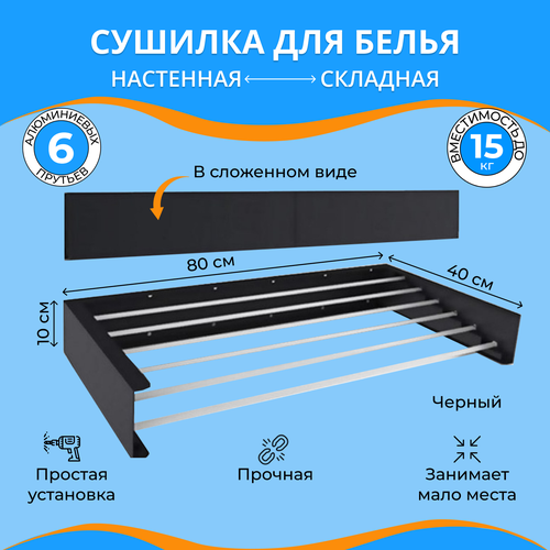 Рекомендуем смротреть ознакомительное видео. Палочки толстые, белье сохнет без заломов. Находка для домохозяек, кто не любит гладить. Корпус раздвижной сушилки для белья и держащие элементы из стали. Электростатическое порошковое окрашивание. Струны из алюминия, всего 6 струн длиной 80 см. Ширина сушилки – 80 см, глубина в раскладном состоянии – 40 см, в собранном – 3 см, высота – 10 см. Вес 2,3 кг. Раскладная сушка для белья ыдерживает до 15 кг. Разрешается над радиаторами отопления. Крайняя к стене струна расположена на отдалении от стены и удобно ею пользоваться. Антикоррозийное покрытие позволяет многолетнее размещение в ванных комнатах. Складная настенная сушилка - удобное практичное решение для сушки одежды гостей отелей, гостиниц, санаториев, общежитий. Практичная и компактная, экономит место в доме, в квартире, в ванной, на балконе, лоджии, над батареей и радиатором. Настенная балконная сушилка удобнее и практичнее, чем обычные вертикальные, напольные, потолочные, веревочные, гармошка. Идеально для небольших помещений. Товар запатентован. Гарантия 1 год.