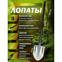 Многофункциональная усиленная складная саперная лопата с проволочной пилой является универсальным инструментом для любящих походы, путешествия. Данная лопата изготовлена из углеродистой авиационной стали твердостью HRC 51+, грузоподъёмностью 200 кг, устойчива к царапинам и повреждениям. Можно регулировать длину до 100 см посредством удлинительных звенев трубок. Многофункциональная лопата-незаменимый помощник! Благодаря своему устройству лопата штыковая имеет множество способов применения-предмет является универсальным раскладным мультитулом, который выручит вас в любой ситуации. На боковой части её штыка находится пила. Вторая часть штыка может выступать как топор. В верхней части штыка лопаты находится канаторез.Шестигранные отверстия в штыке помогут открутить гайки. Гвоздодер выдрать гвозди. В одном из удлинительных звеньев спрятаны свисток с огнивом, это поможет вам в розжиге костра при отсутствии спичек. В верхней части одной из трубок имеется стеклобой. Мотыга при фиксации угла повтора штыка в 90 градусов. Можно использовать как крюк при фиксации угла в 45 градусов. Также складная лопата включает в свою комплектацию удобный многофункциональный нож с открывалкой для бутылок и мини-пилкой. Сама лопатка выполнена из нержавеющей стали, много раз проверена в деле нами и нашими клиентами. Если вам предстоит отдых в условиях дикой природы,т о наша туристическая лопата отлично впишется в ваш походный набор. С ней можно смело отправиться и на рыбалку-она поможет вам провести вам любой активный отдых комфортно. Сам по себе набор компактный, он помещается в удобную сумку, которая идет к нему в подарок. Она собирается и разбирается, что делает её невероятно практичной. Помимо огромного ряда технических преимуществ, включает в себя идеальные внешние характеристики: длина 100 см в сборе, усовершенствованный штык, утолщенная сталь. Ручка подойдет для руки любого размера, будет комфортно даже при длительном использовании.