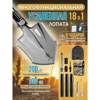 Многофункциональная усиленная складная саперная лопата с проволочной пилой является универсальным инструментом для любящих походы, путешествия. Данная лопата изготовлена из углеродистой авиационной стали твердостью HRC 51+, грузоподъёмностью 200 кг, устойчива к царапинам и повреждениям. Можно регулировать длину до 100 см посредством удлинительных звенев трубок. Многофункциональная лопата-незаменимый помощник! Благодаря своему устройству лопата штыковая имеет множество способов применения-предмет является универсальным раскладным мультитулом, который выручит вас в любой ситуации. На боковой части её штыка находится пила. Вторая часть штыка может выступать как топор. В верхней части штыка лопаты находится канаторез. Шестигранные отверстия в штыке помогут открутить гайки. Гвоздодер выдрать гвозди. В одном из удлинительных звеньев спрятаны свисток с огнивом, это поможет вам в розжиге костра при отсутствии спичек. В верхней части одной из трубок имеется стеклобой. Мотыга при фиксации угла повтора штыка в 90 градусов. Можно использовать как крюк при фиксации угла в 45 градусов. Также складная лопата включает в свою комплектацию удобный многофункциональный нож с открывалкой для бутылок и мини-пилкой. Сама лопатка выполнена из нержавеющей стали, много раз проверена в деле нами и нашими клиентами. Если вам предстоит отдых в условиях дикой природы, т о наша туристическая лопата отлично впишется в ваш походный набор. С ней можно смело отправиться и на рыбалку-она поможет вам провести вам любой активный отдых комфортно. Сам по себе набор компактный, он помещается в удобную сумку, которая идет к нему в подарок. Она собирается и разбирается, что делает её невероятно практичной. Помимо огромного ряда технических преимуществ, включает в себя идеальные внешние характеристики: длина 100 см в сборе, усовершенствованный штык, утолщенная сталь. Ручка подойдет для руки любого размера, будет комфортно даже при длительном использовании.
