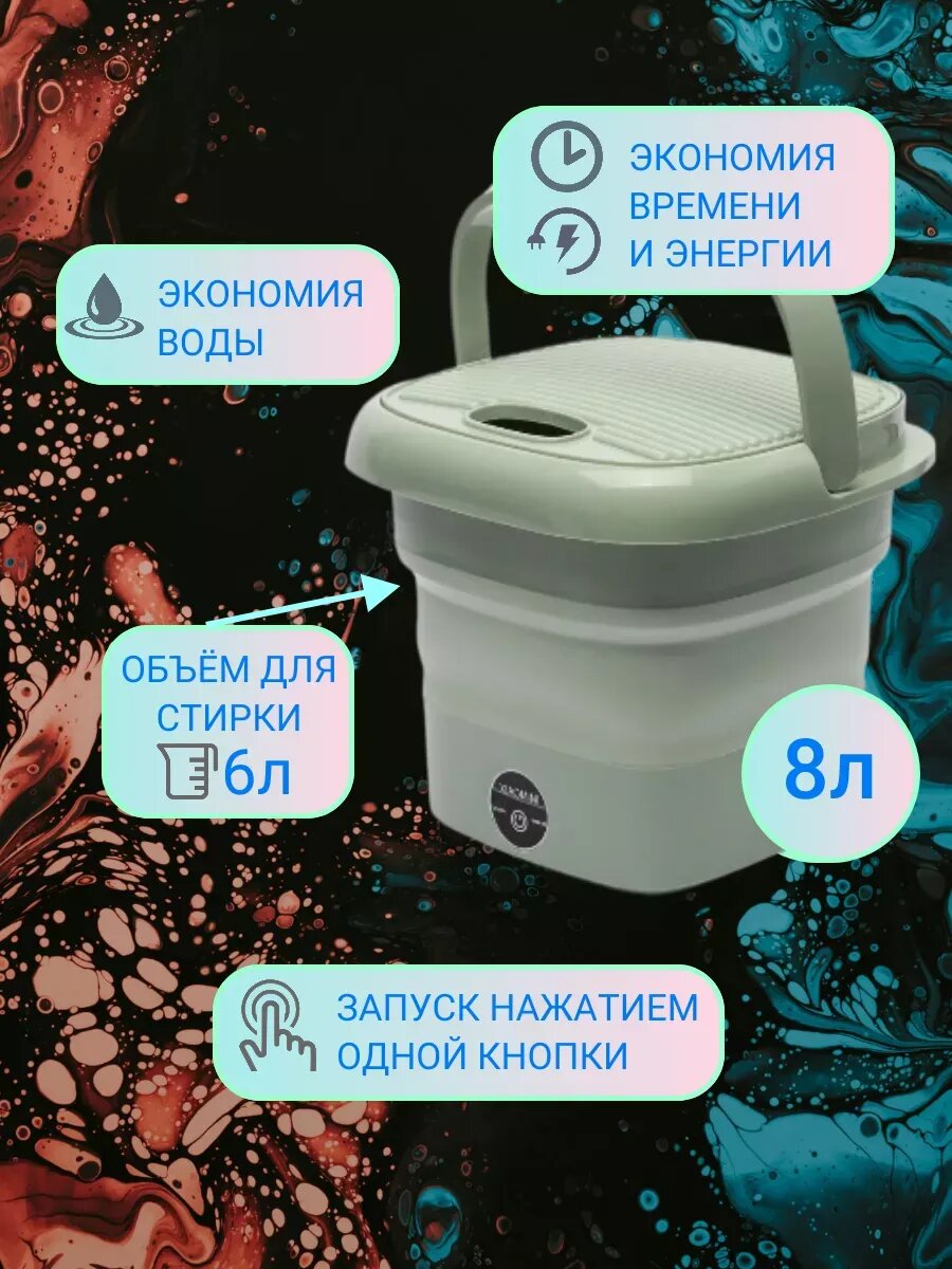 Складная автоматическая машинка мини подходит для стирки белья на даче или дома. Портативный компактный прибор легко поместится в чемодан благодаря складному ведру, что делает его идеальным выбором для путешествий. Бытовая техника оснащена моторчиком, что обеспечивает эффективную работу. Автоматическая ультразвуковая машинка рассчитана на стирку негабаритных вещей: детской одежды, носков, нижнего белья, футболок, полотенец. Работает от сети 220-240V. Министиралка стирает до 1,5 кг белья. Компактное ведерко позволяет экономить воду и средства для стирки. Пластиковые элементы устойчивы к воздействию порошка и других химикатов. Электрическая малютка имеет режим полуавтомат с функцией отжима. Легкая в обслуживании и эксплуатации, она станет незаменимым подспорьем, сэкономит место и время, приучит Ваших деток к помощи по дому. Дачная стиралка не требует особых условий эксплуатации благодаря продуманной конструкции. Складная система позволяет легко хранить машину после использования. Мини-стиральная машина с функцией складывания идеально подойдет для тех, кто ценит компактность и мобильность в уходе за вещами.
