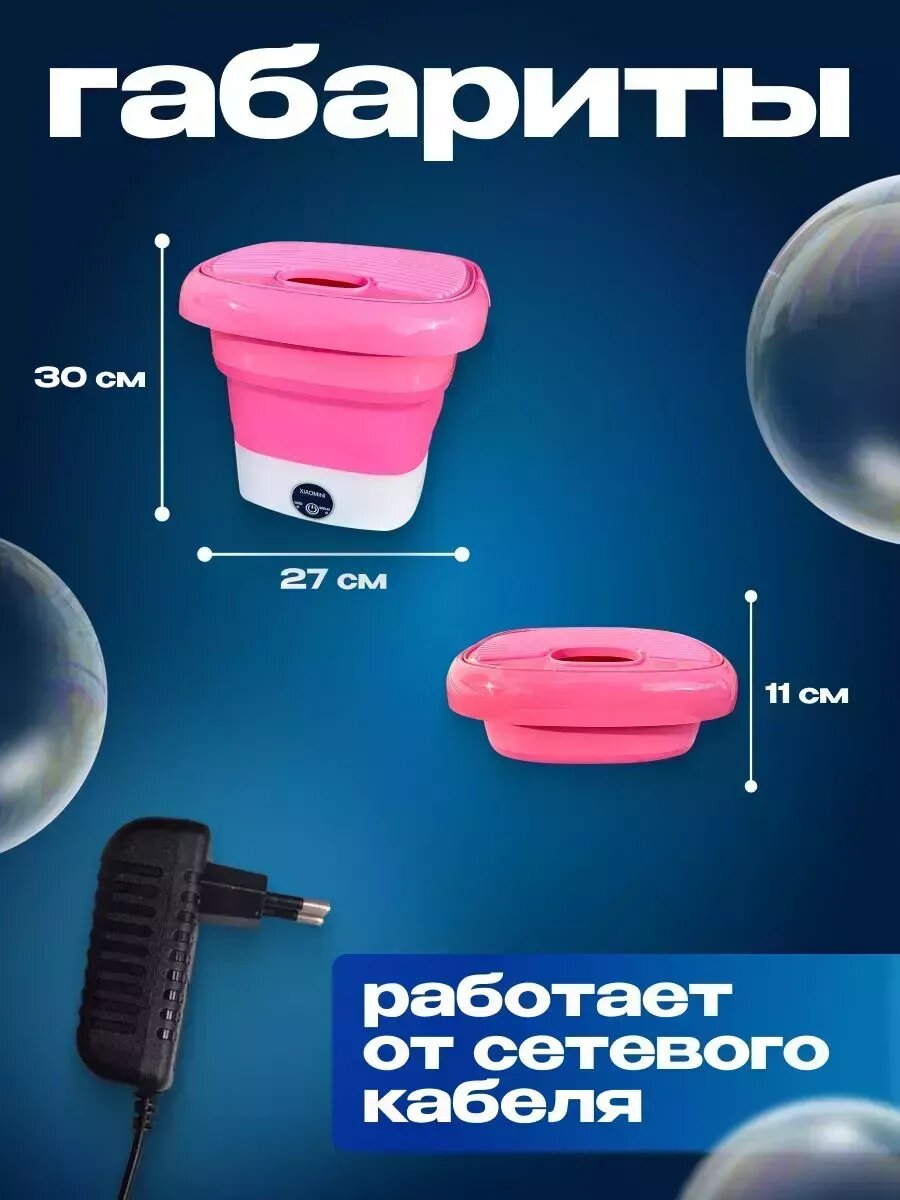 Складная автоматическая машинка мини подходит для стирки белья на даче или дома. Портативный компактный прибор легко поместится в чемодан благодаря складному ведру, что делает его идеальным выбором для путешествий. Бытовая техника оснащена моторчиком, что обеспечивает эффективную работу. Автоматическая ультразвуковая машинка рассчитана на стирку негабаритных вещей: детской одежды, носков, нижнего белья, футболок, полотенец. Работает от сети 220-240V. Министиралка стирает до 1,5 кг белья. Компактное ведерко позволяет экономить воду и средства для стирки. Пластиковые элементы устойчивы к воздействию порошка и других химикатов. Электрическая малютка имеет режим полуавтомат с функцией отжима. Легкая в обслуживании и эксплуатации, она станет незаменимым подспорьем, сэкономит место и время, приучит Ваших деток к помощи по дому. Дачная стиралка не требует особых условий эксплуатации благодаря продуманной конструкции. Складная система позволяет легко хранить машину после использования. Мини-стиральная машина с функцией складывания идеально подойдет для тех, кто ценит компактность и мобильность в уходе за вещами.
