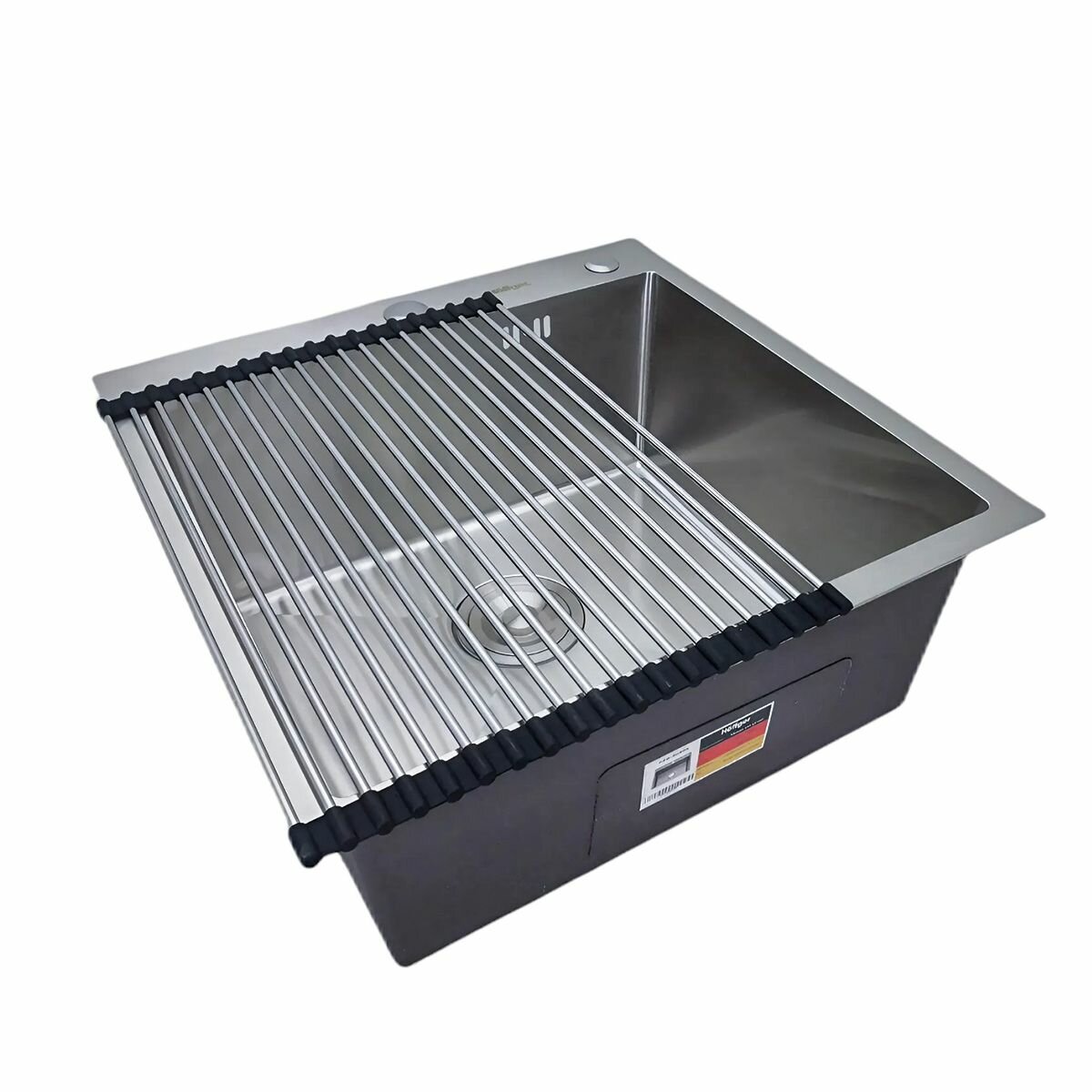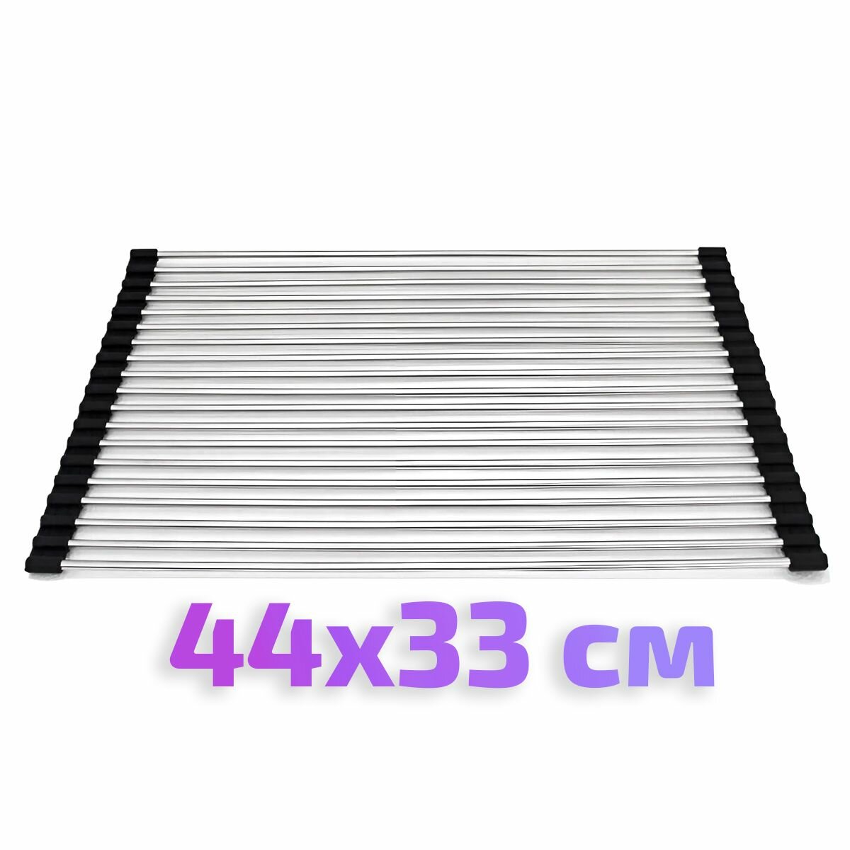 Купить Складная сушилка для посуды Hoffger 4433 Satin (Сталь сатин), 44х33 см, сушилка для посуды на раковину, ролл мат, решетка для раковины на кухне с доставкой по всей России.