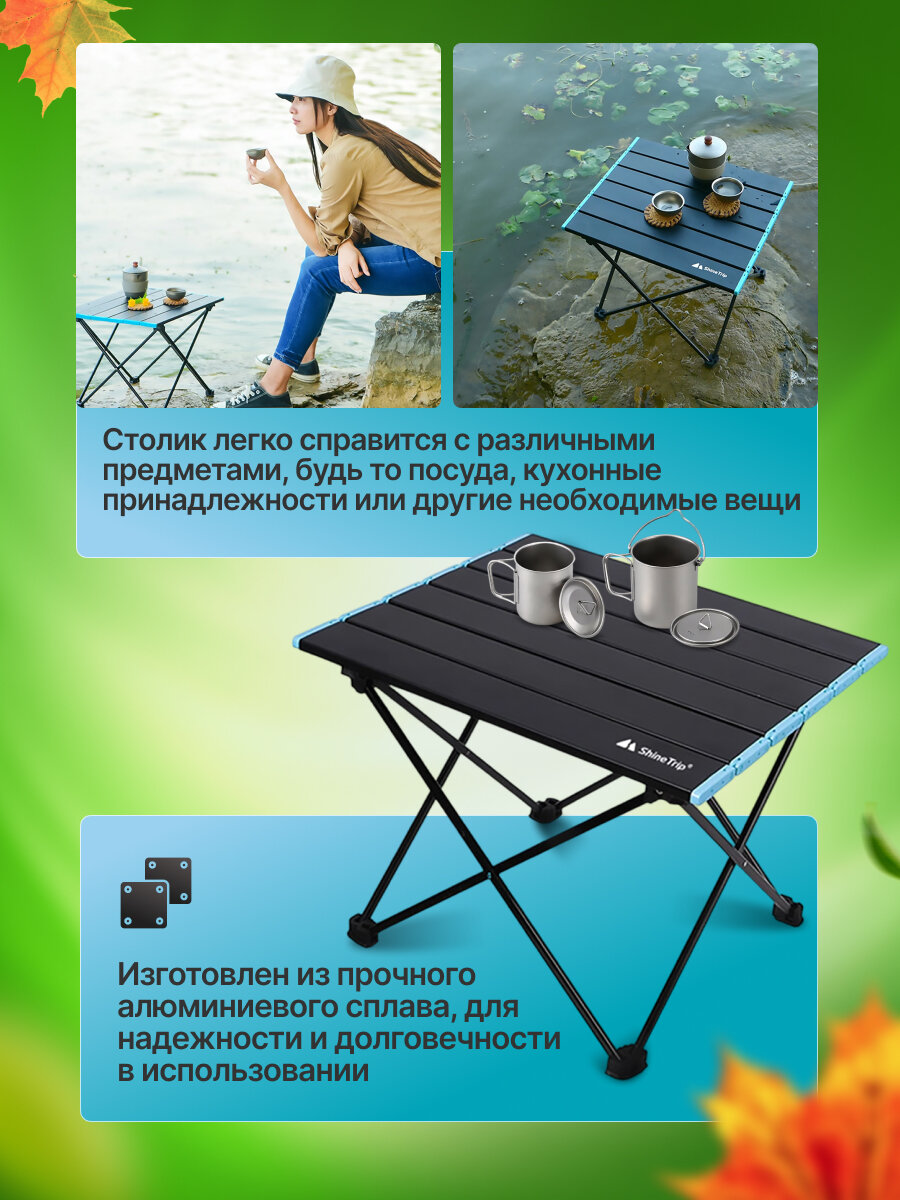 Изготовленный из прочного алюминиевого сплава, этот столик обеспечивает надежность и долговечность в использовании. С его помощью вы сможете наслаждаться комфортом и удобством даже в самых отдаленных местах.