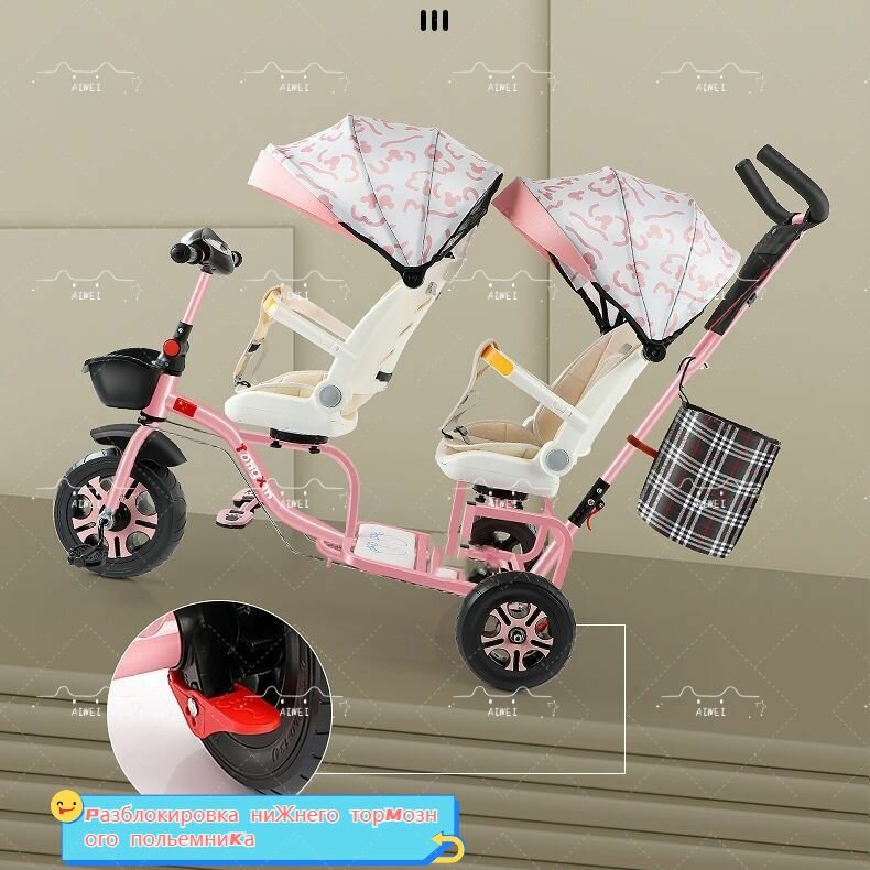 Складной двойной детский трехколесный велосипед От 1 до 6 лет Двухсидячий велосипед Передняя и задняя детская коляска с откидной спинкой с музыкой, налобные фонари: сравнение цен, характеристики, фото, актуальное наличие и цены.