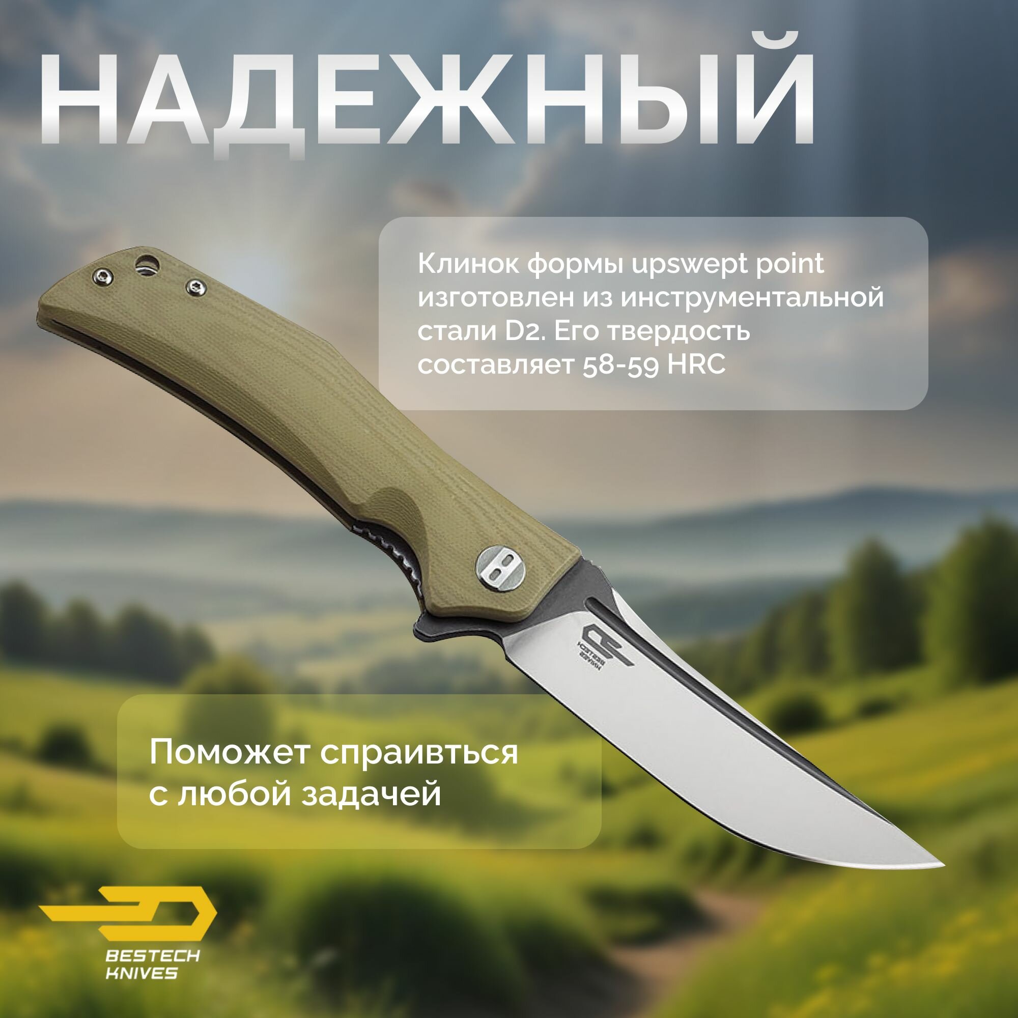 Складной нож Bestech Knives «Scimitar D2», с замком Liner Lock, рукоять G10, бежевый: сравнение цен, характеристики, фото, актуальное наличие и цены.