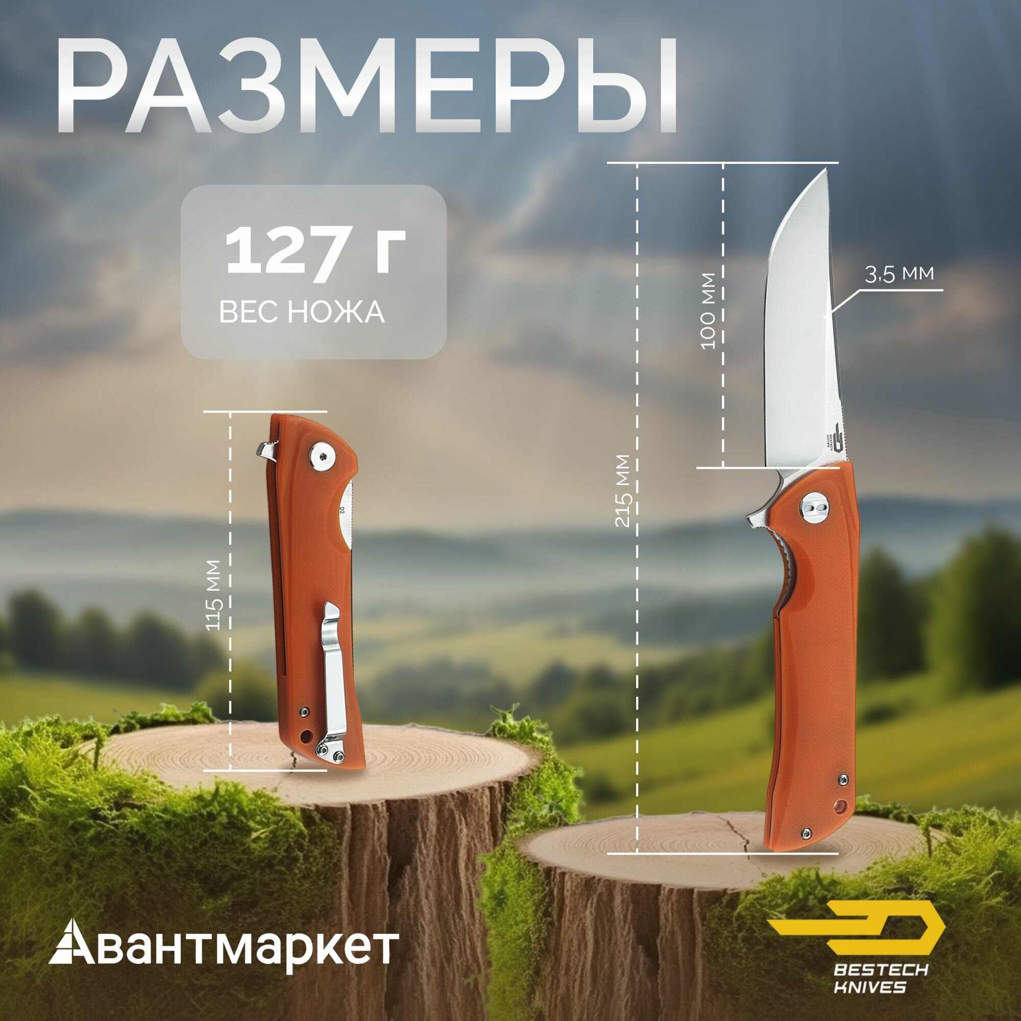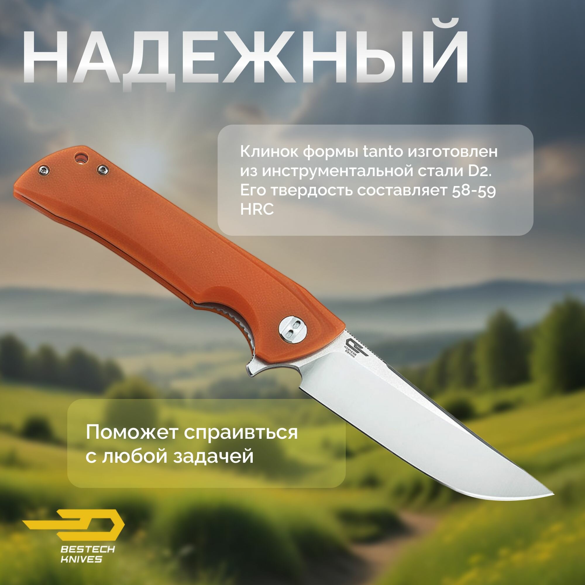 Складной нож Bestech «Paladin», сталь D2, клинок drop point, рукоять G10, оранжевый: сравнение цен, характеристики, фото, актуальное наличие и цены.