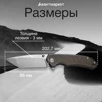 Бренд — Civivi; Тип ножа — складной; Типы складных ножей — с фиксацией; Тип замка — LinerLock; Форма клинка — Tanto; Твердость лезвия — 59-61HRC; Сталь клинка — D2; Материал рукоятки — G10; Цвет рукояти — черный; Длина лезвия — 88 мм; Толщина лезвия — 3 мм; Общая длина — 202,7 мм; Вес — 103,1 грамм; Гарантия — 1 год. Не является холодным оружием и не является предметом запрещенным к продаже на территории Российской Федерации.