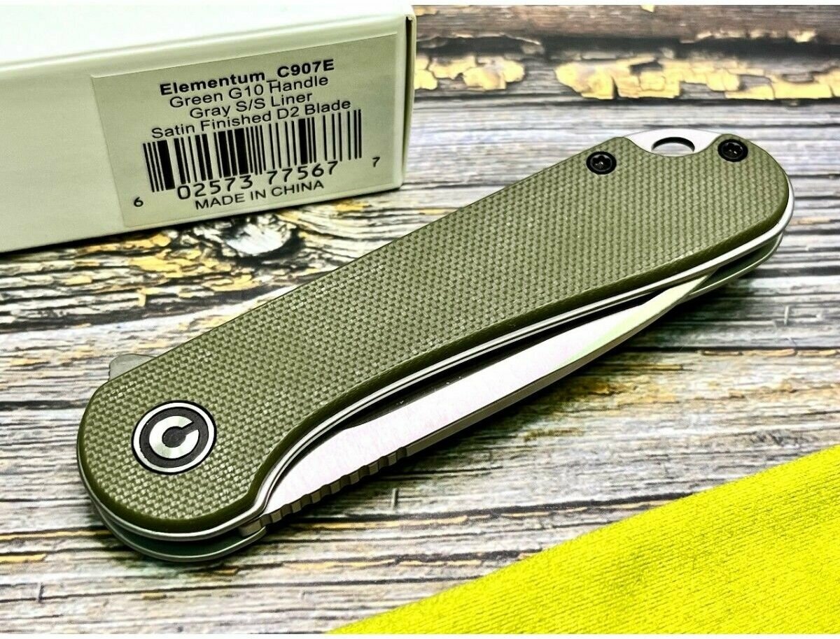 Складной НОЖ CIVIVI ELEMENTUM GREEN, D2 это ответ молодого и развивающегося бренда на вызов маститых западных ножевых компаний. В этом складном ноже есть все современные фишки, которые стали обязательным элементом EDC ножей. В качестве материала здесь используется инструментальная сталь состав, которой оптимизирован для создания ножевых клинков. Сталь отлично держит острые углы заточки, хорошо подходит для создания сложной геометрии и при контакте с твердыми предметам и не образует выкрашиваний.