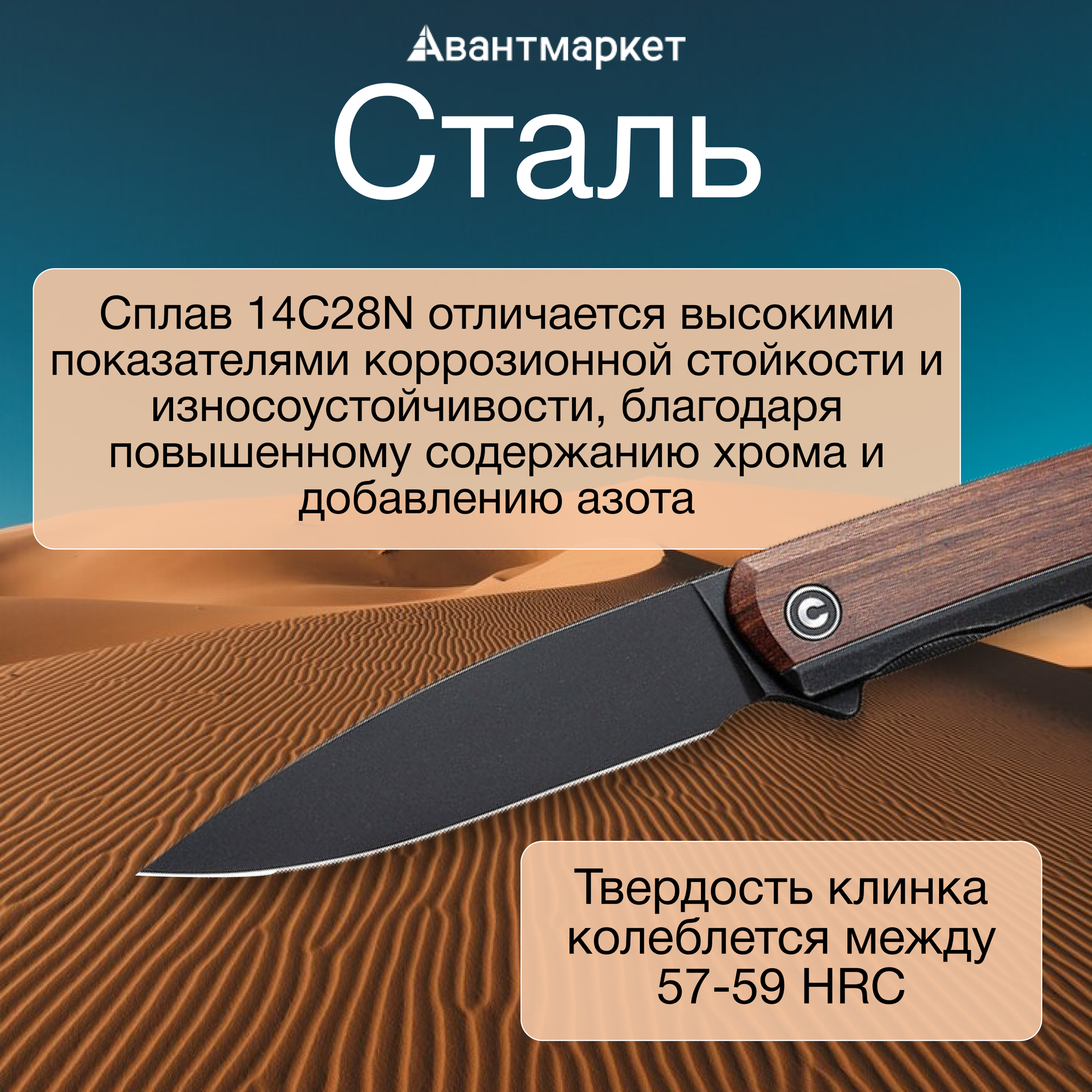 Складной нож CIVIVI Savant C14C28N Stainless Steel With G10 Inlay Black/Wood: сравнение цен, характеристики, фото, актуальное наличие и цены.