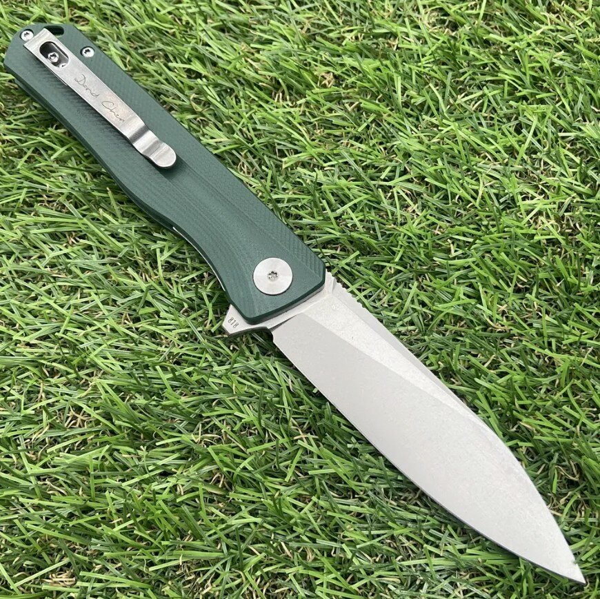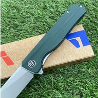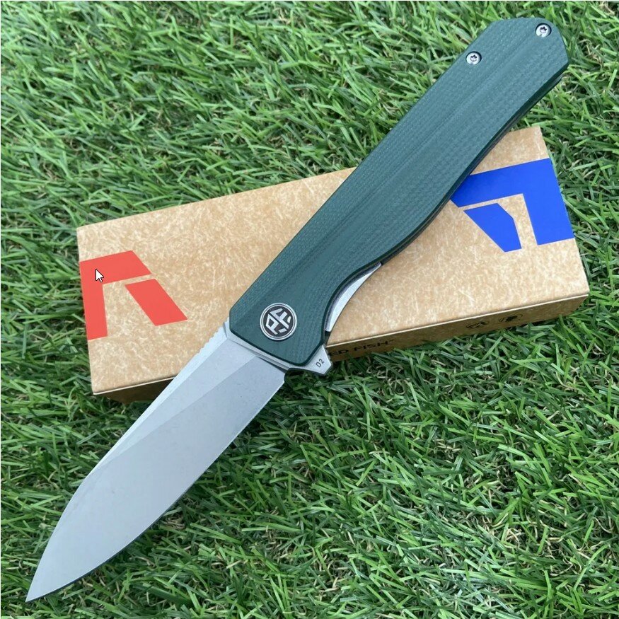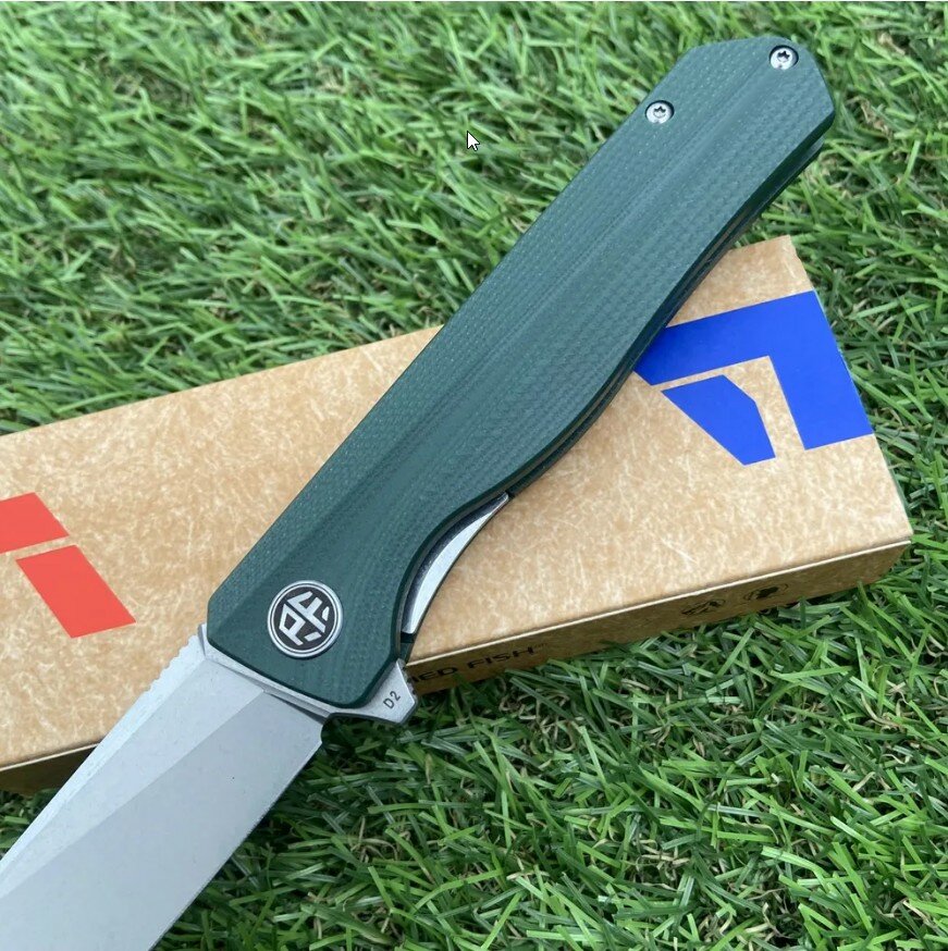 Характеристики: Модель: PF818 Общая длина: 205 мм Длина клинка: 90 мм Толщина обуха: 3,5 мм Ширина клинка: 24 мм Марка стали: D2 Обработка лезвия: Stonewash Материал рукояти: G10 Обработка рукоятки: ЧПУ Твердость клинка: 59-60 HRC Система: шарикоподшипник Вес: 104 гр