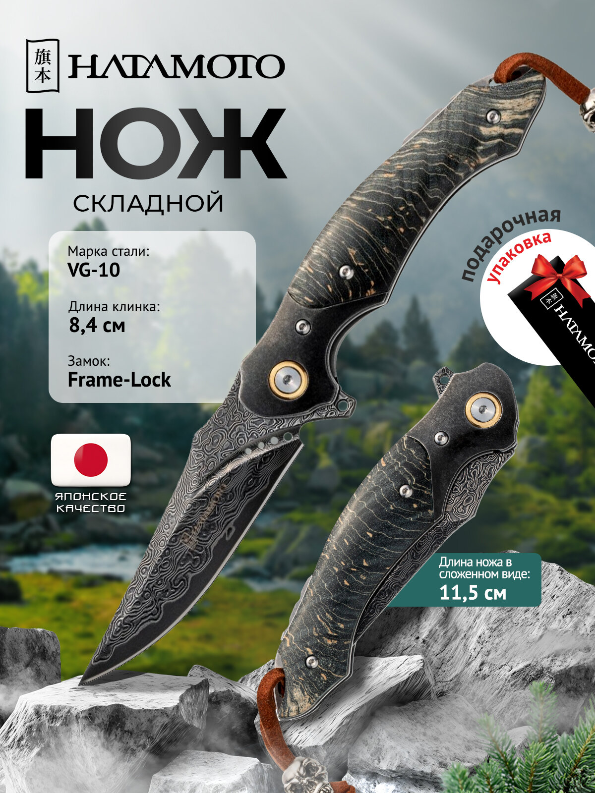 Купить Складной нож Hatamoto (HFK-2434), длина клинка 84 мм, дамасская сталь VG-10, 76 слоёв, рукоять дерево с доставкой по всей России. Складной нож Hatamoto (HFK-2434), длина клинка 84 мм, дамасская сталь VG-10, 76 слоёв, рукоять дерево: сравнение цен, характеристики, фото, актуальное наличие и цены.