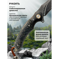 Особенность этой модели - фрейм-лок, обеспечивающий максимально надежную фиксацию клинка в рабочем положении. При твердости 61 HRC сталь отлично держит заточку даже при интенсивном использовании. Двухсторонняя клиновидная заточка делает нож универсальным инструментом для различных задач.