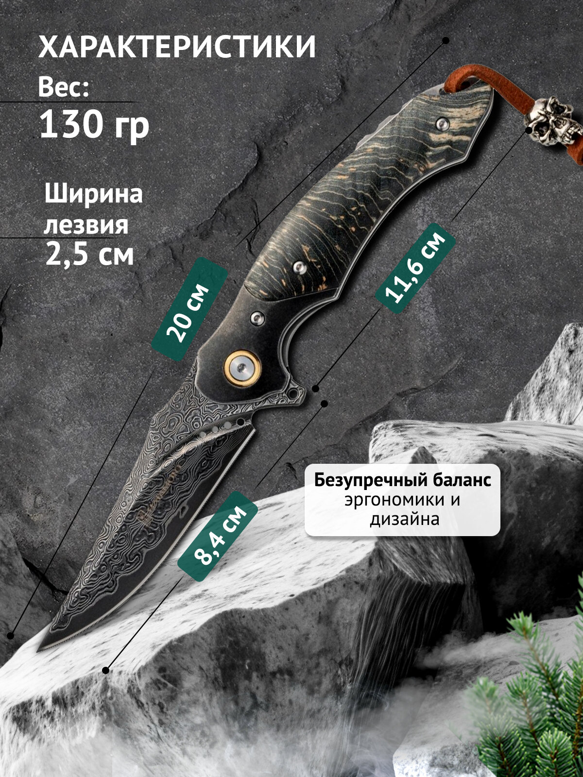 HFK-2434 Классический складной нож с современными технологиями - именно так можно охарактеризовать эту модель. Клинок из японской стали VG-10 длиной 8,4 см сочетает в себе отличные режущие свойства с высокой коррозионной стойкостью, а рукоять из стабилизированной древесины придает инструменту благородный внешний вид и обеспечивает надежный хват. Вес ножа в 130 грамм оптимален для повседневного ношения, а длина в сложенном состоянии (11,5 см) делает его удобным для переноски.